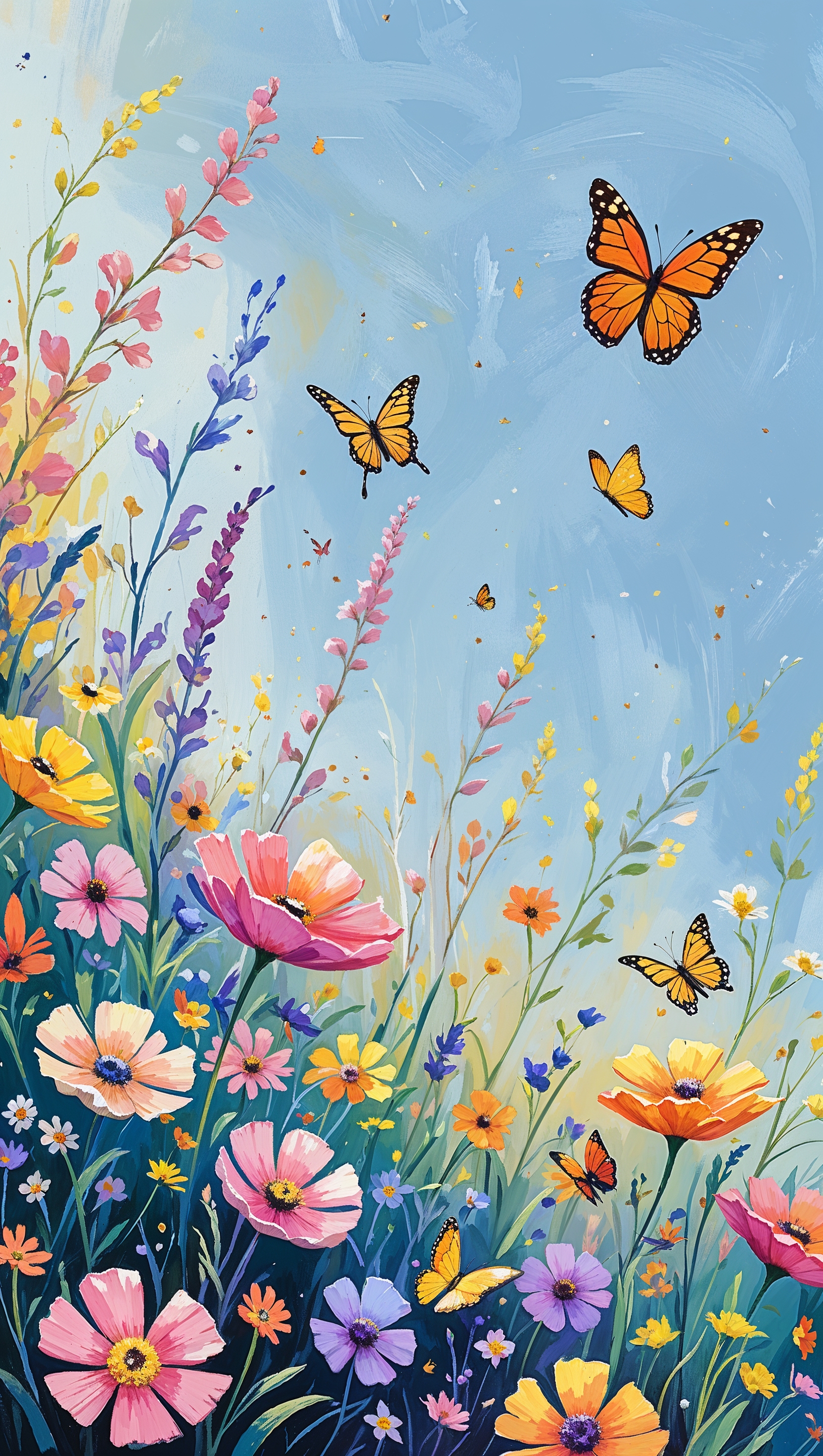 1664x2944 Wildflowers and butterflies, iPhone wallpaper