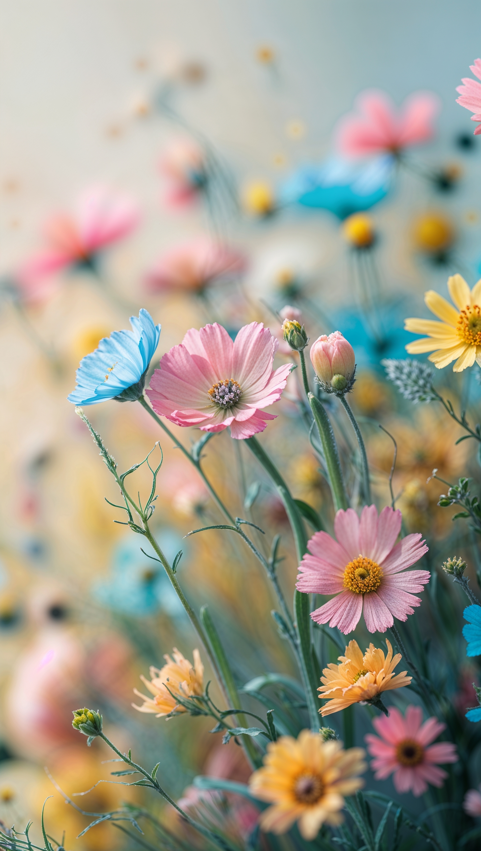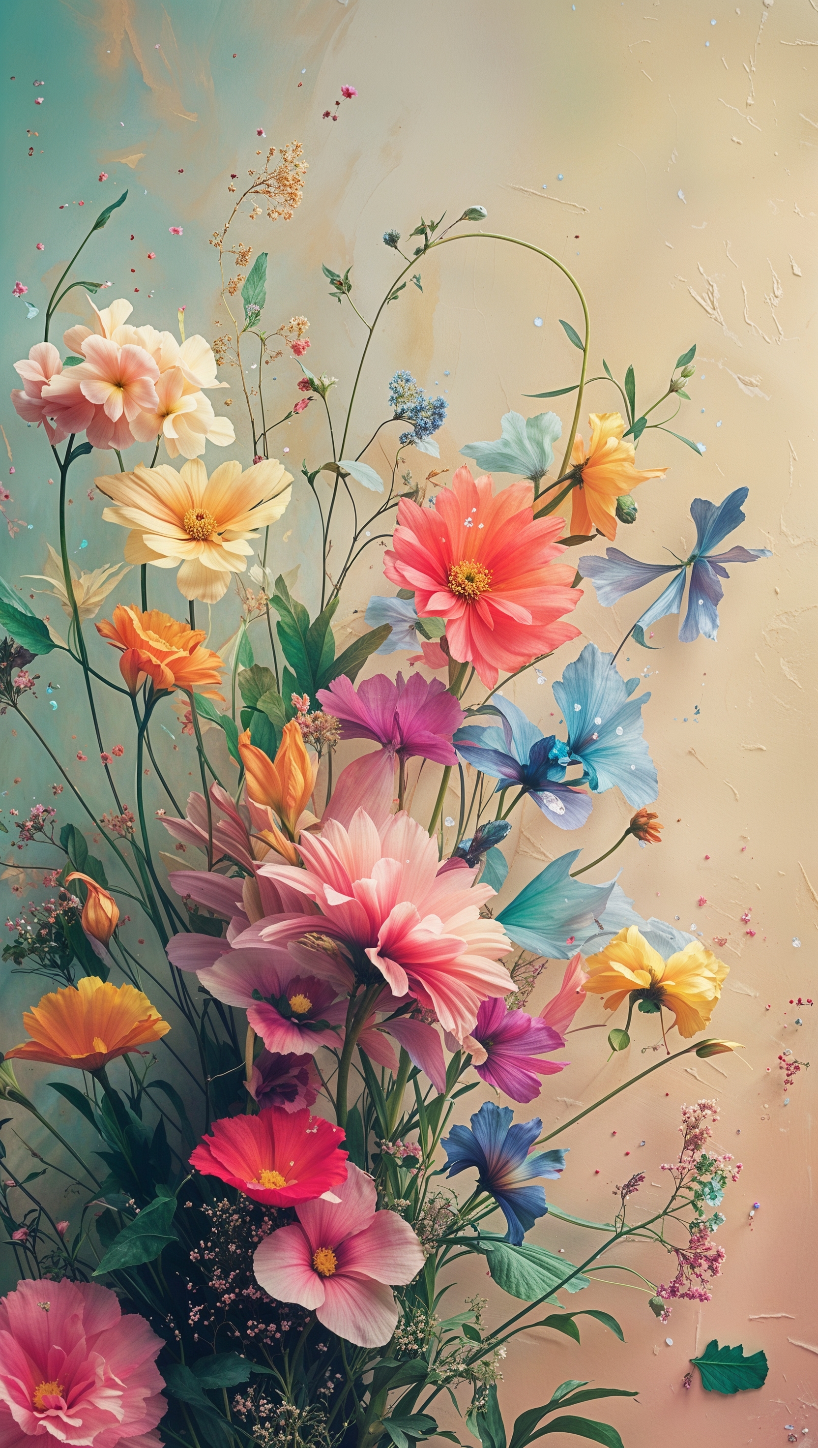 1664x2944 Pastel-colored wildflowers, iPhone wallpaper