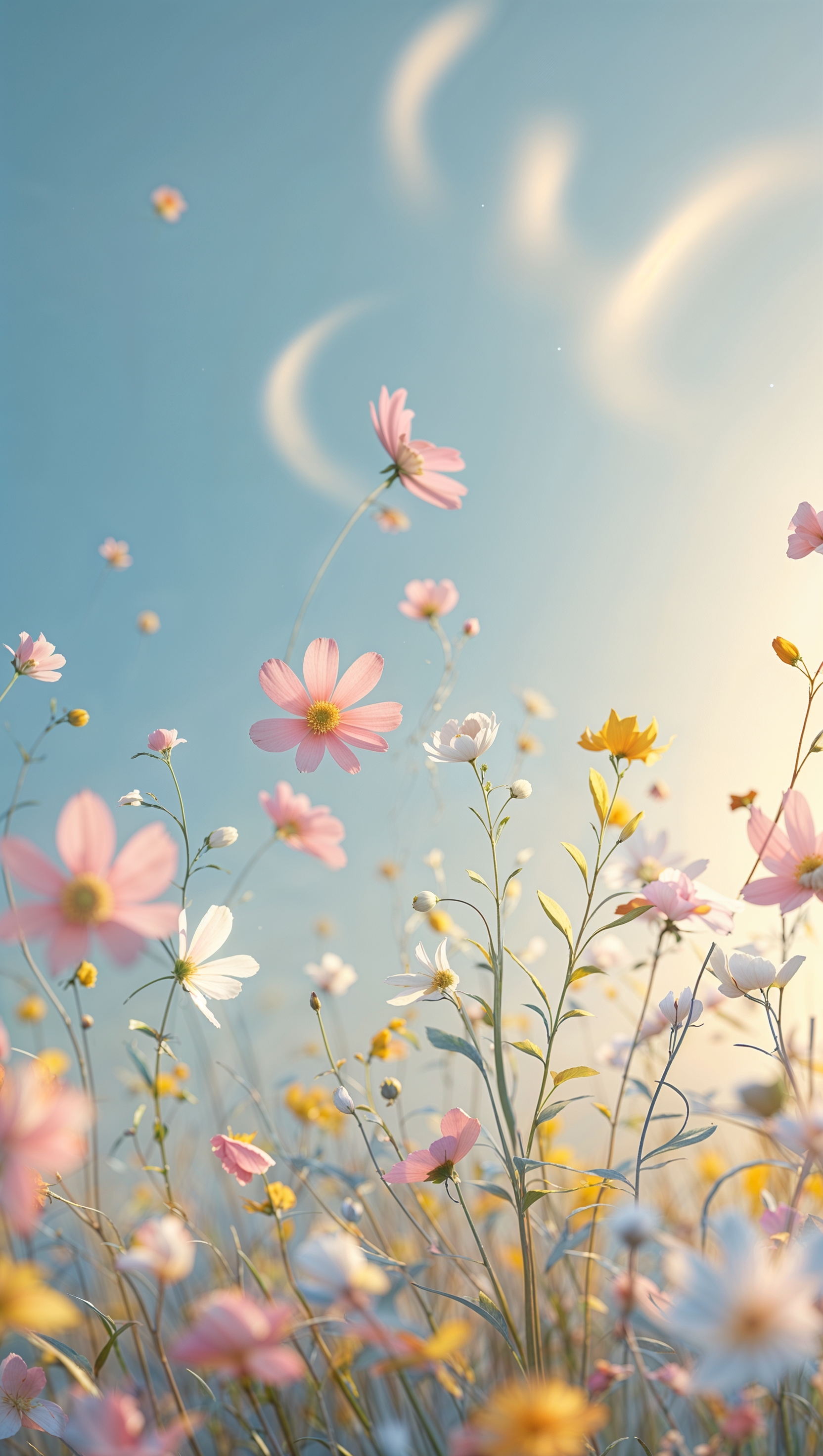 1664x2944 Wildflowers and soft clouds, iPhone wallpaper