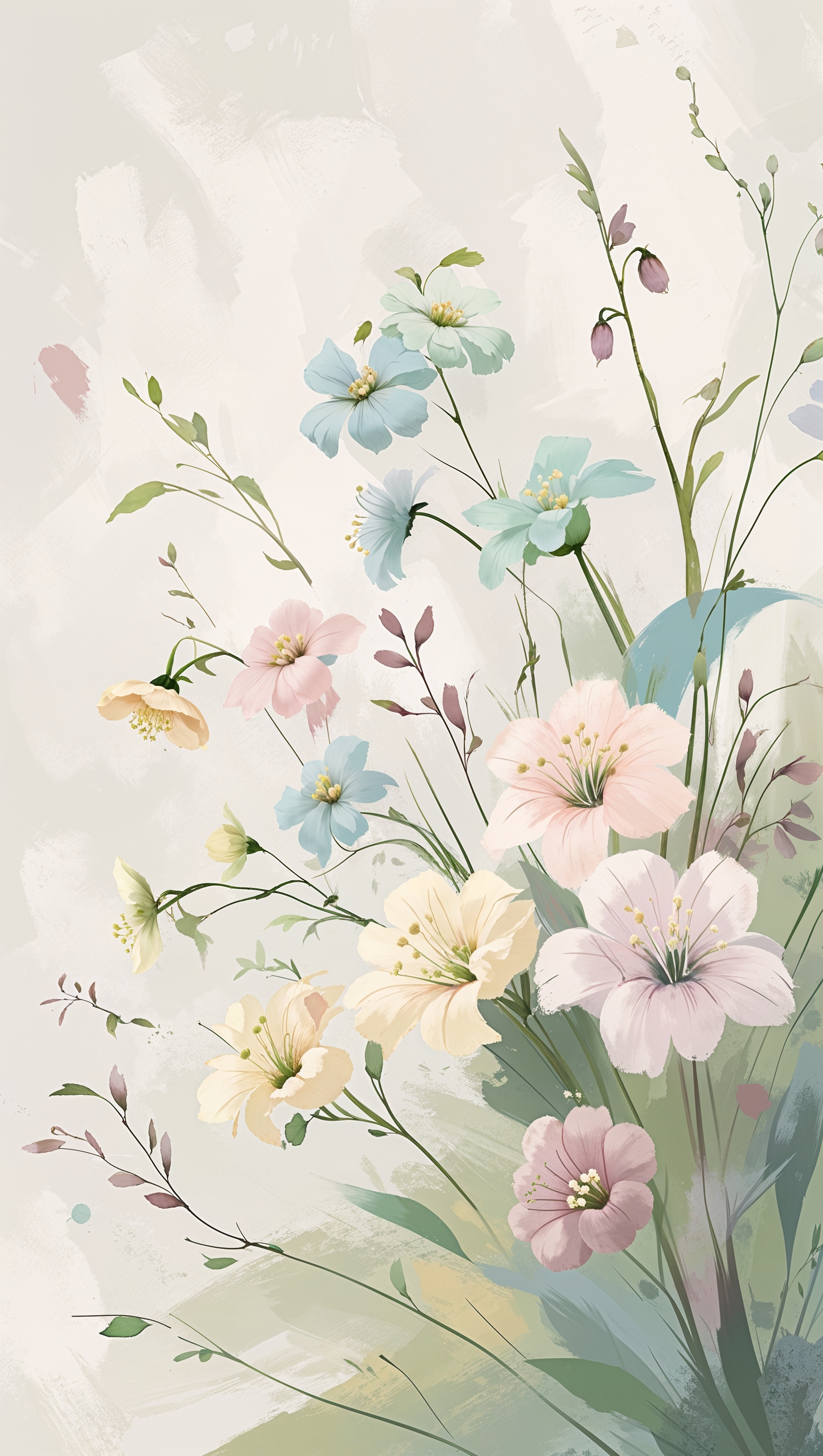 1664x2944 Minimalist wildflowers on a plain background for iPhone wallpaper