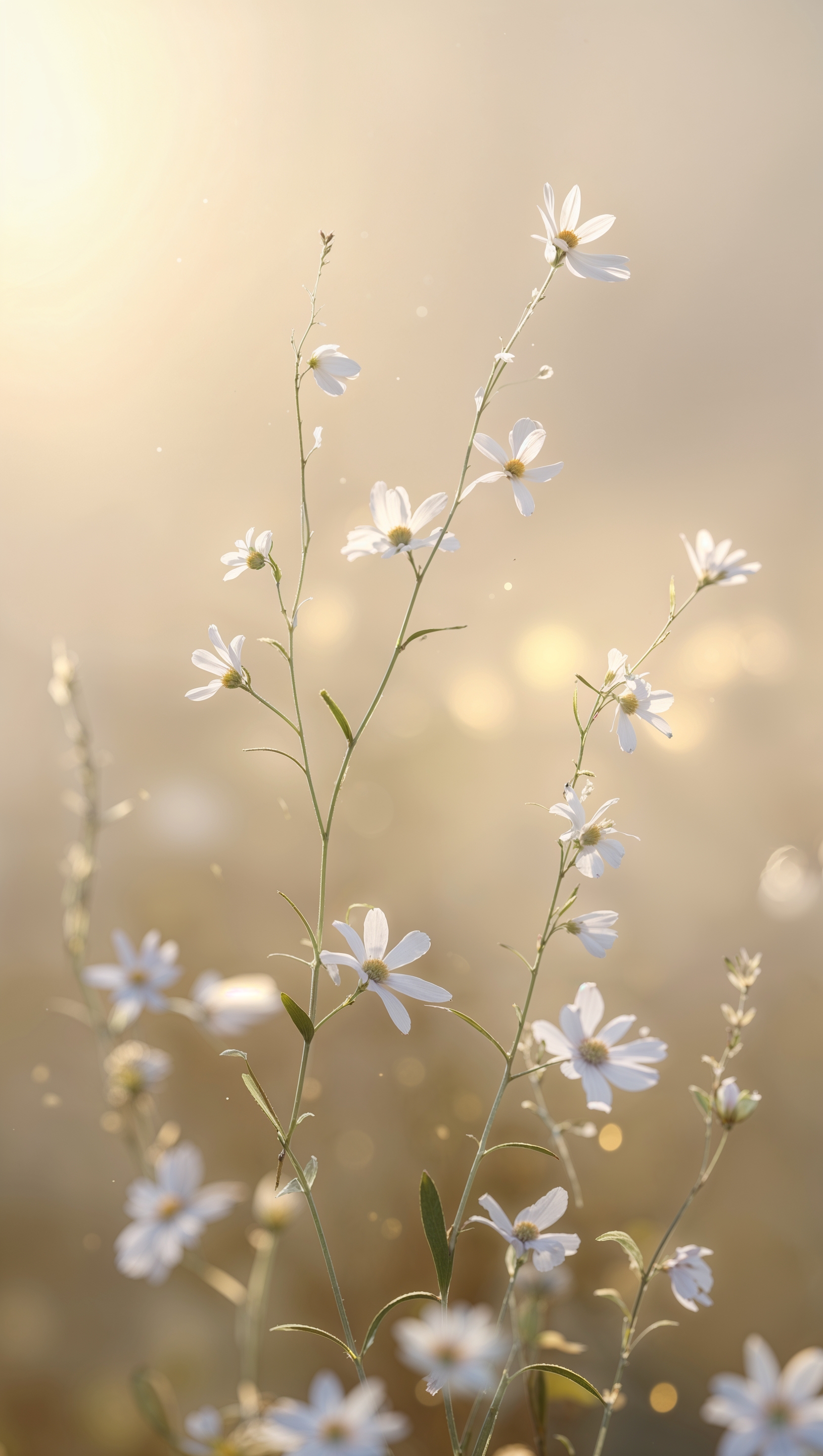 1664x2944 White wildflowers with soft lighting, calming iPhone wallpaper