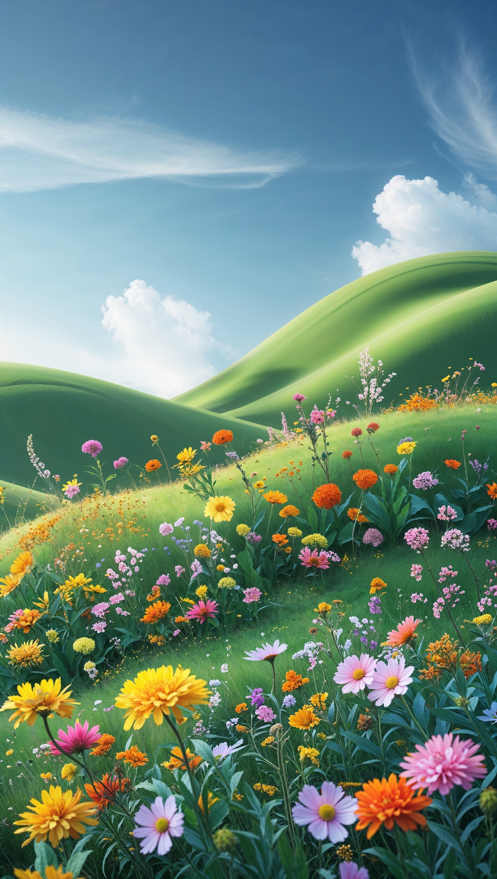 1664x2944 Wildflowers on green hills, iPhone wallpaper