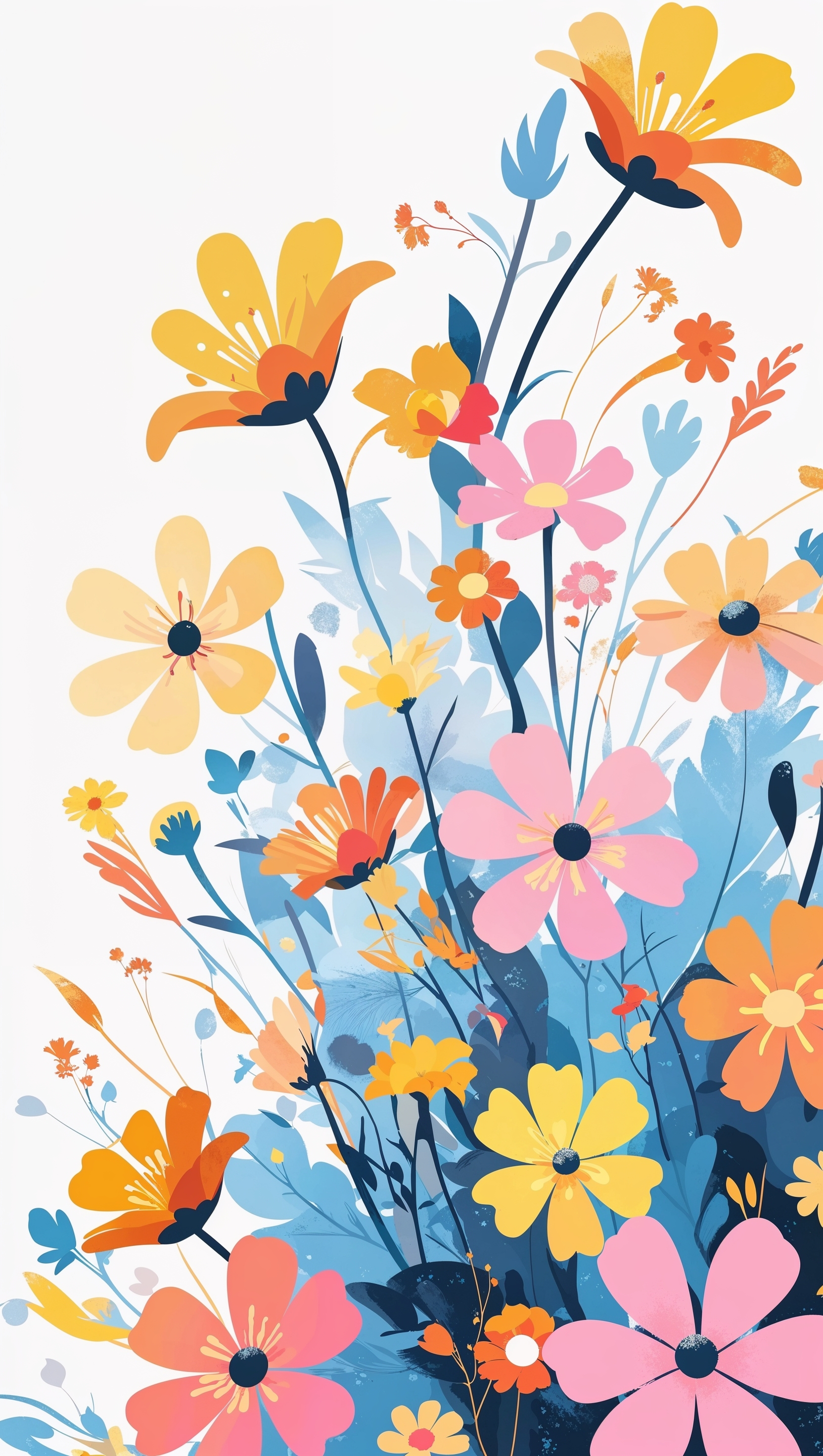 1664x2944 Colorful flat-design wildflowers for iPhone wallpaper