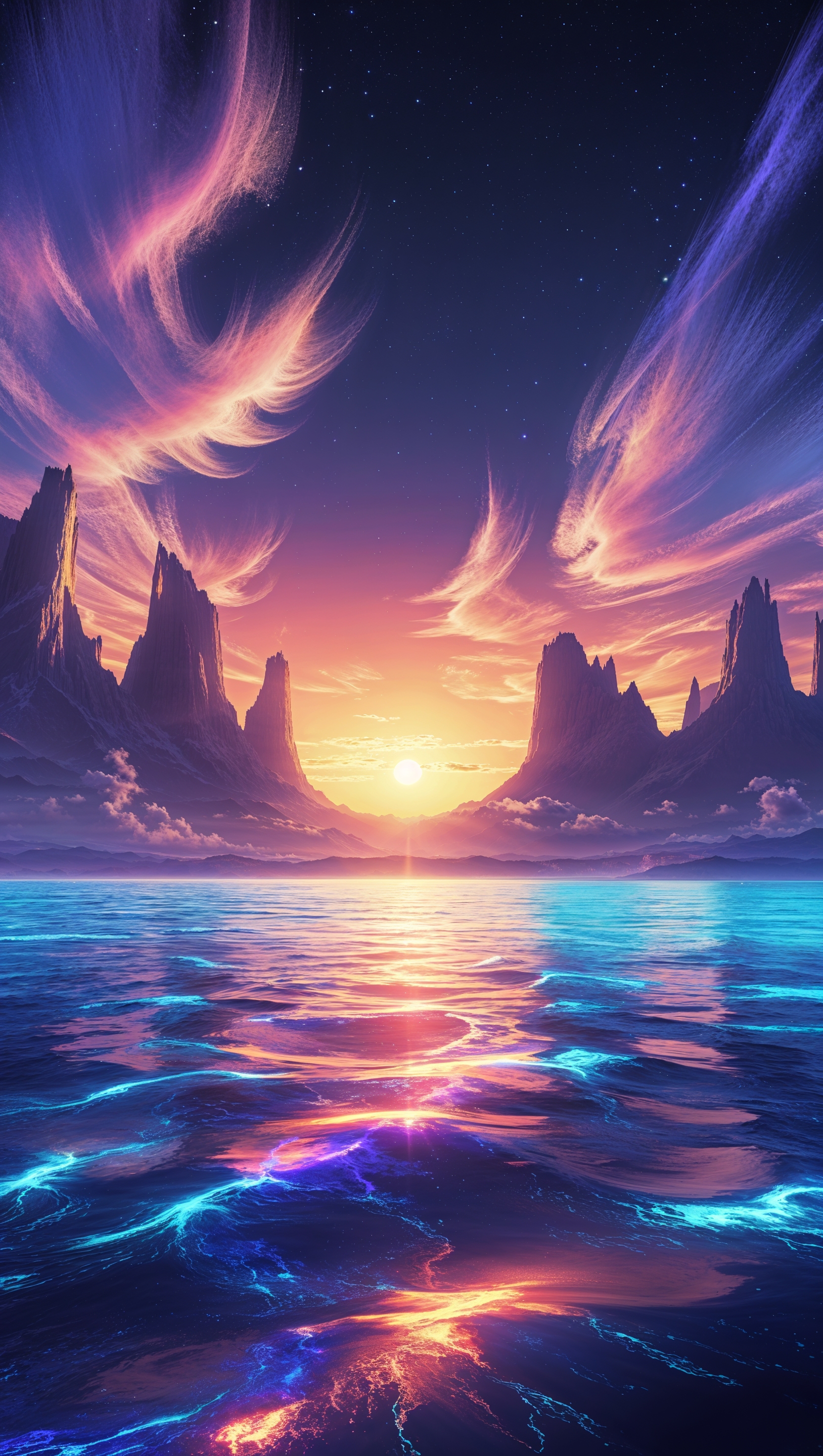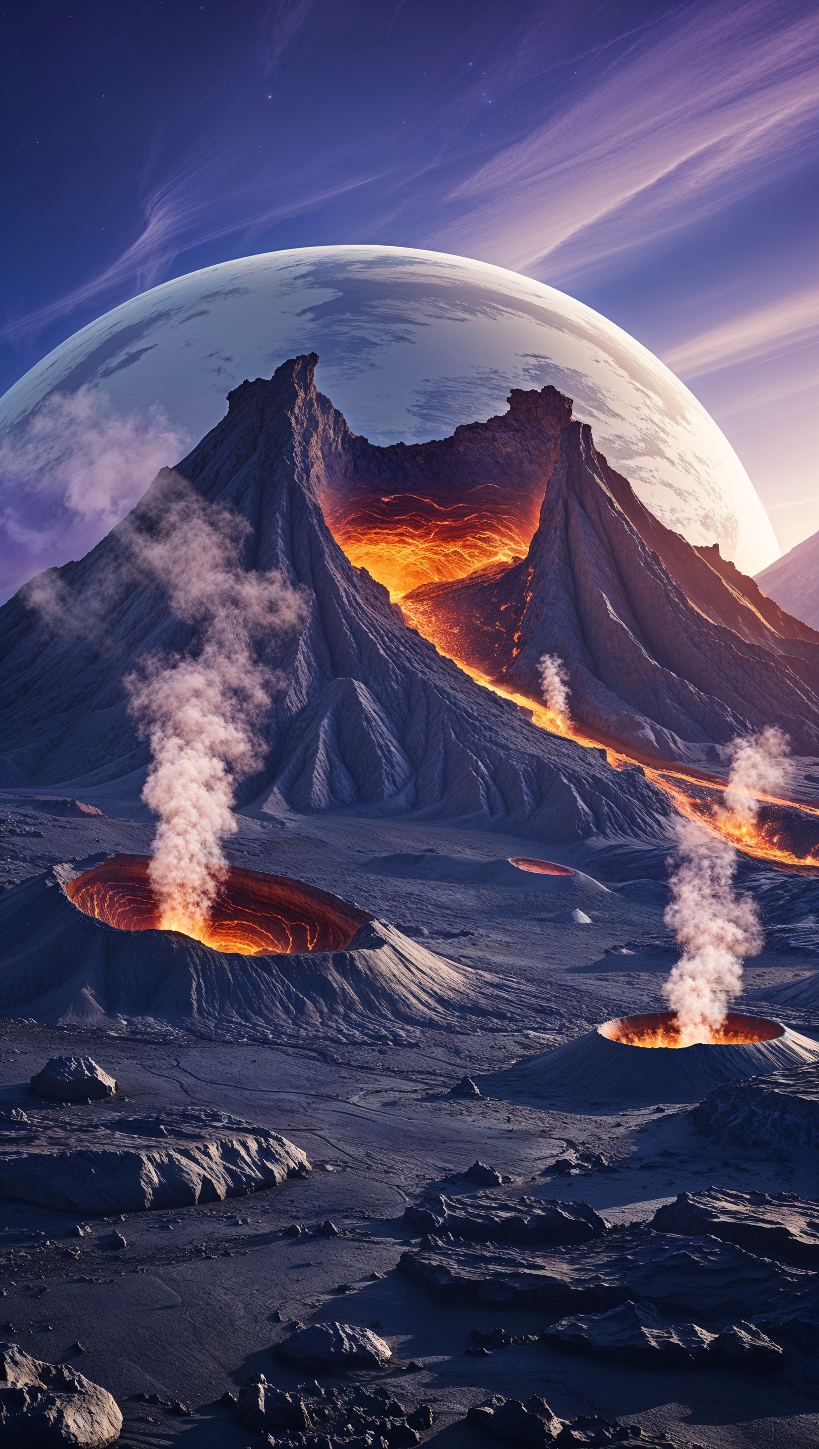 1664x2944 A planet with a volcanic surface and blue-purple sky
