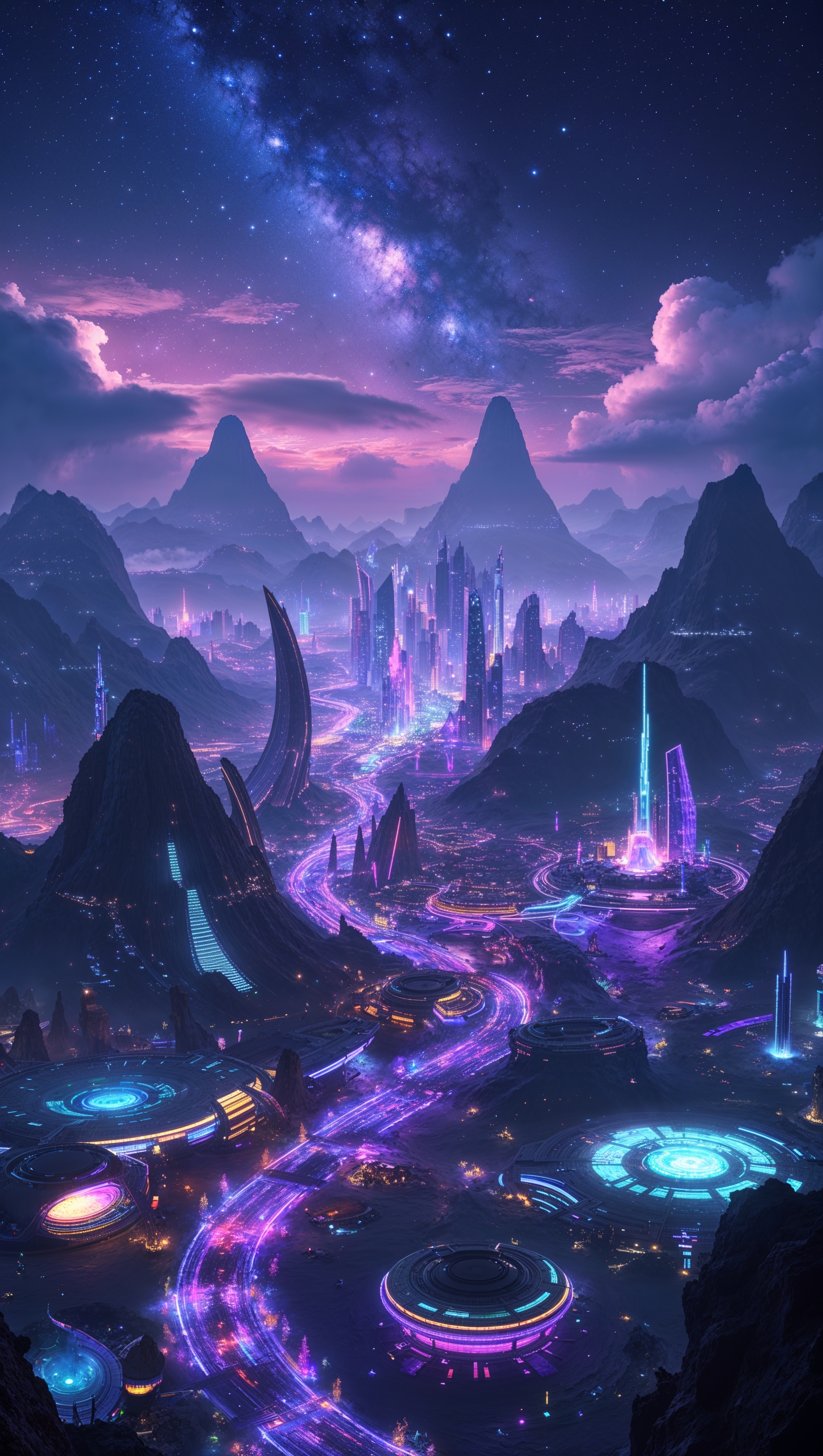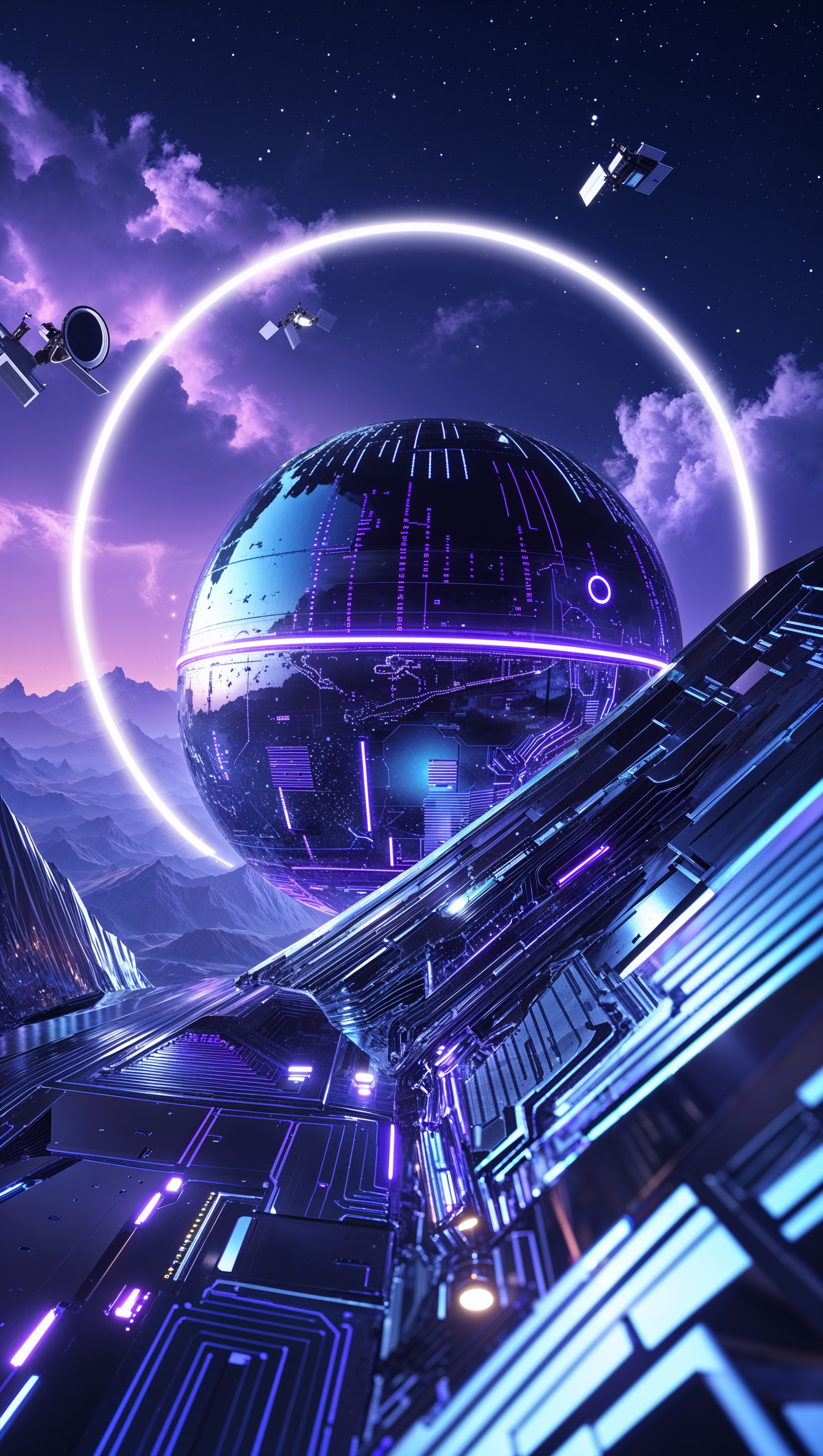 1664x2944 Cyberpunk-style image of a futuristic planet