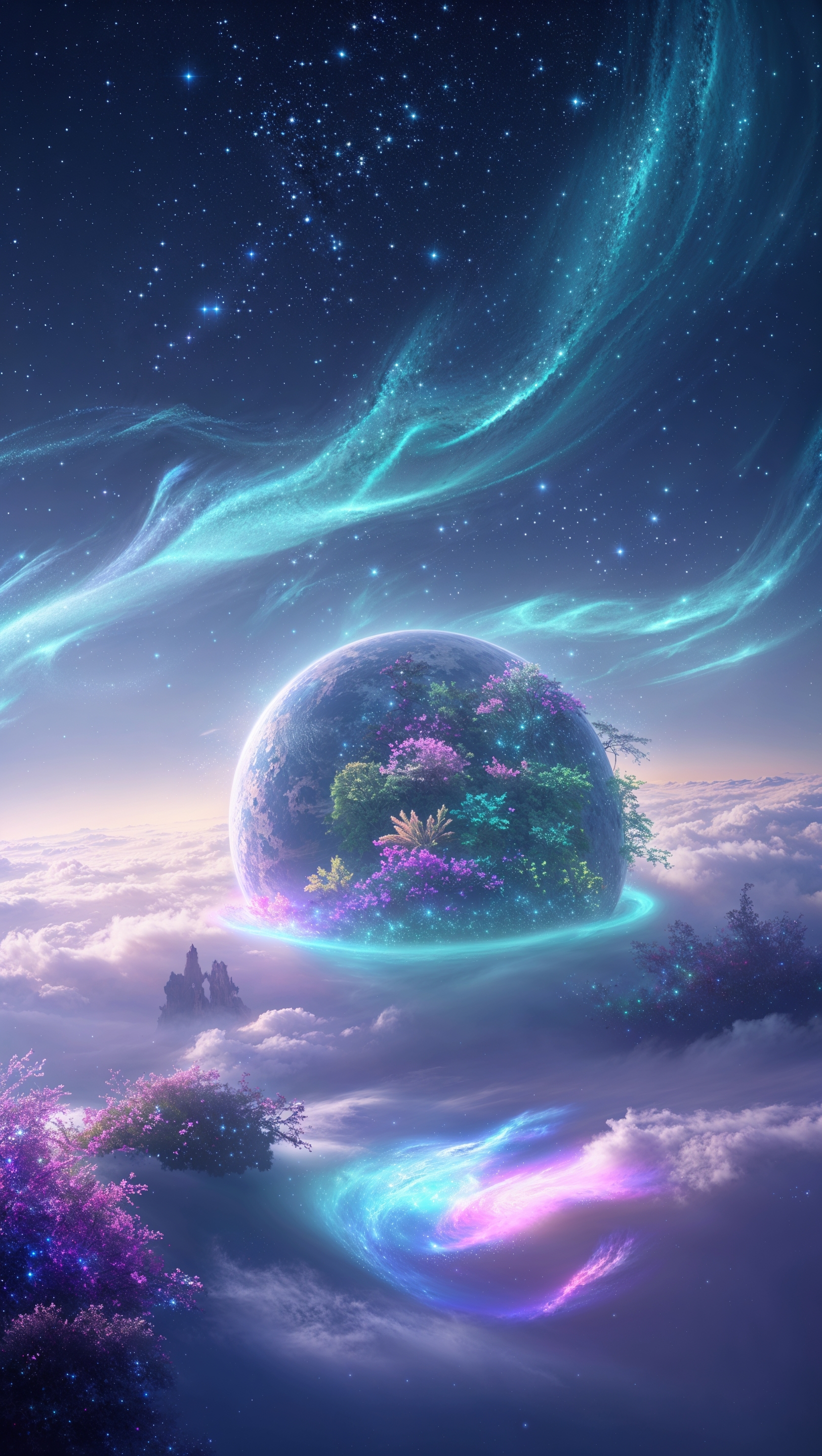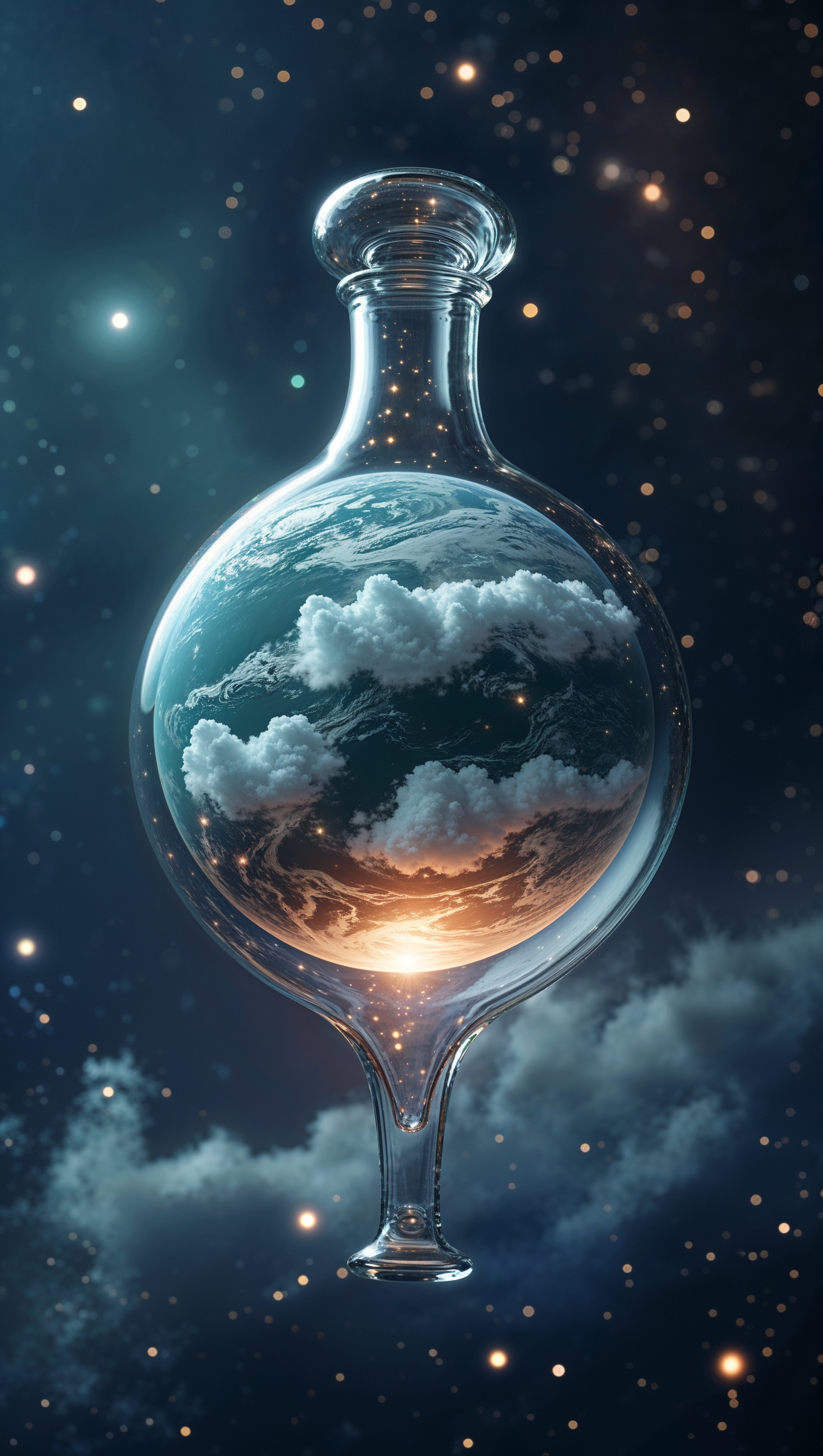 1664x2944 A creative image of a planet inside a glass bottle floating in space