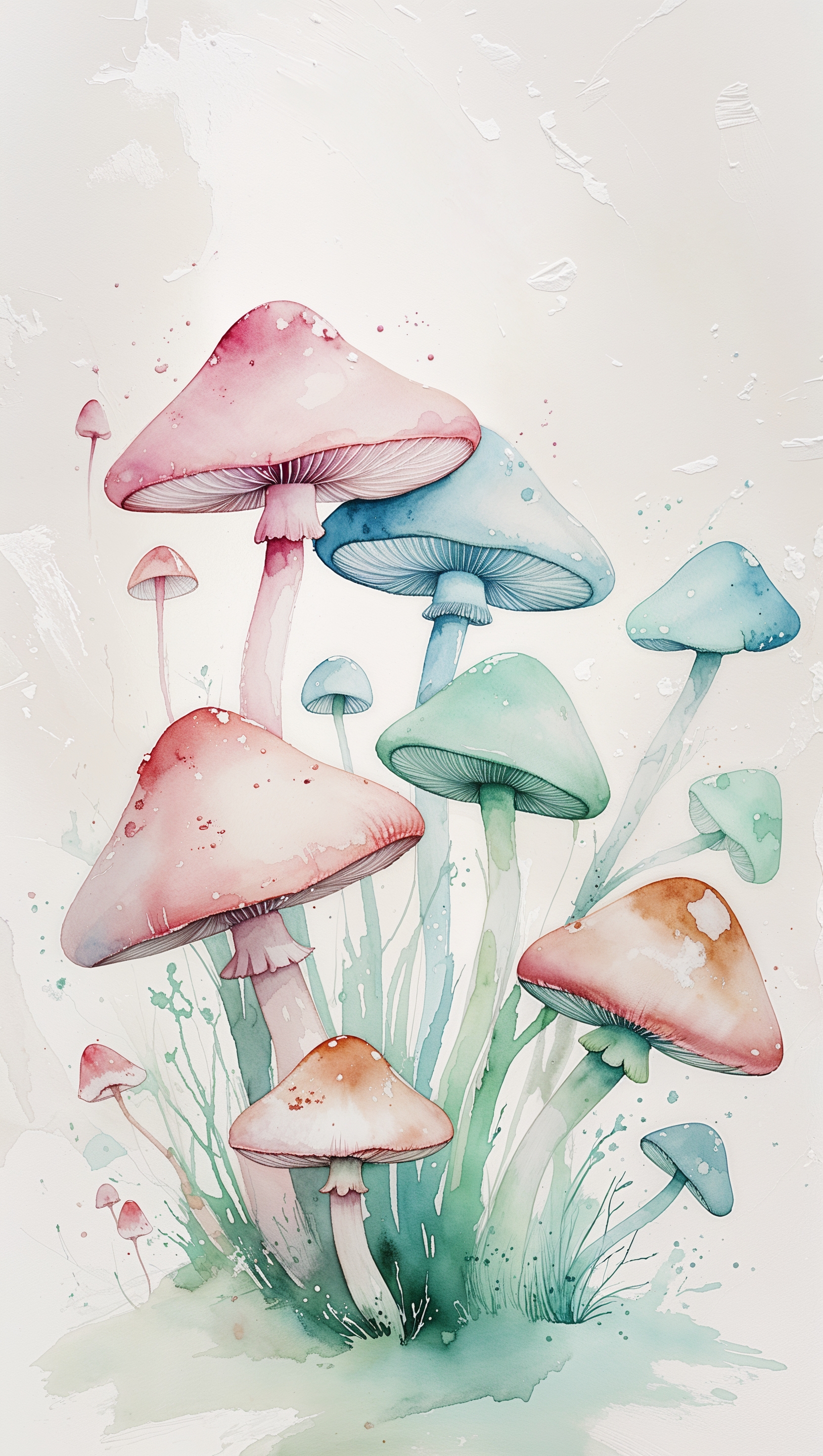 1664x2944 iPhone wallpaper with watercolor mushrooms and soft colors