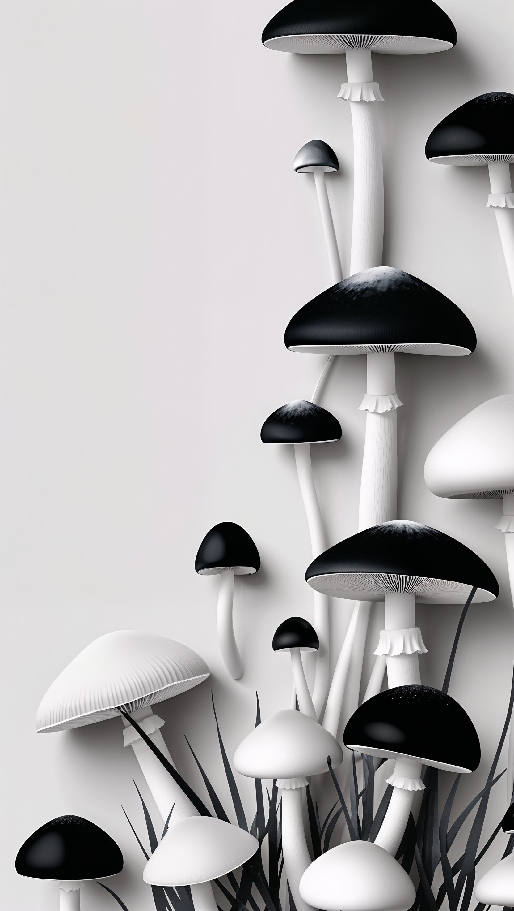 1664x2944 iPhone wallpaper with black and white mushrooms in minimal style