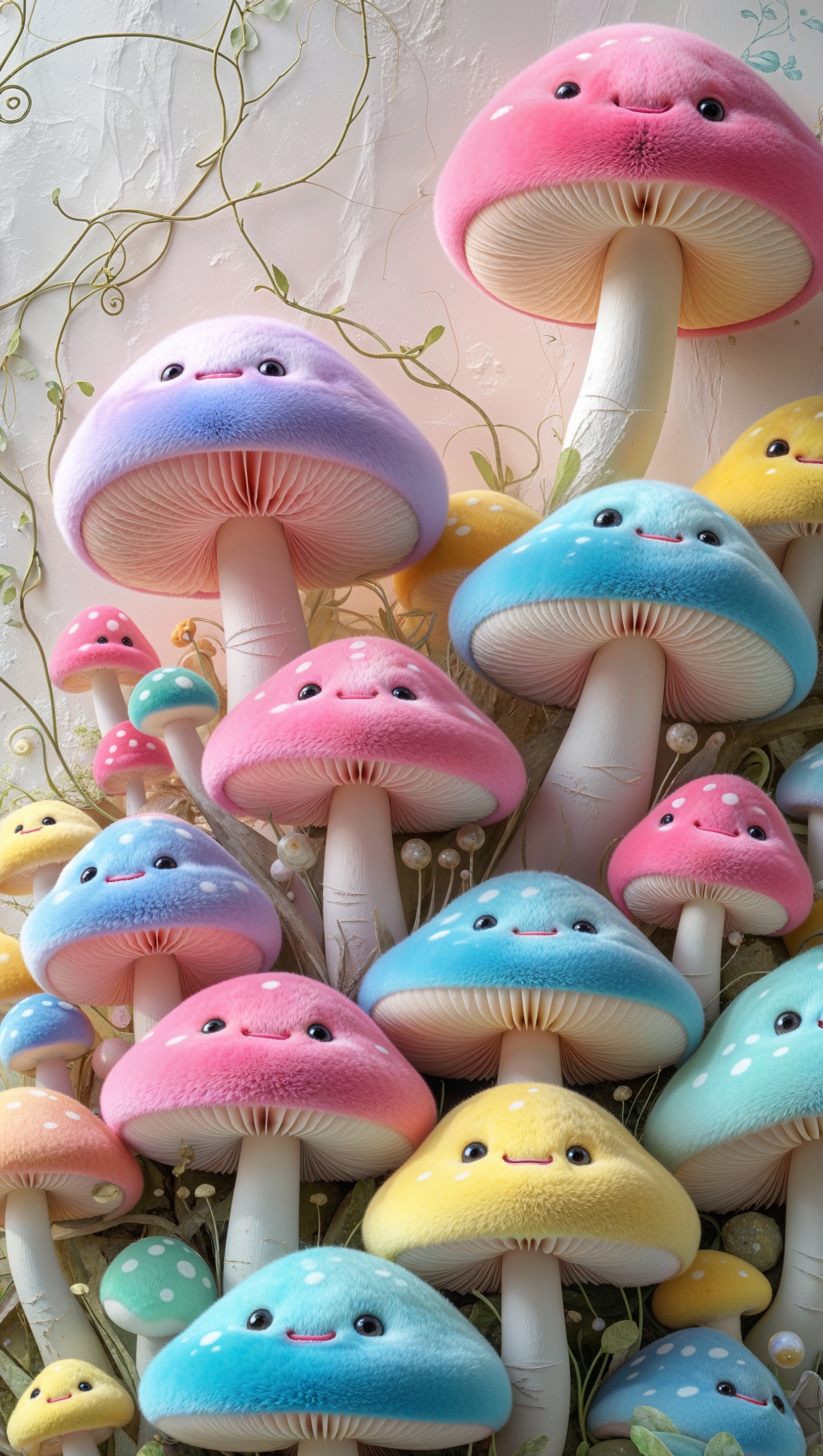 1664x2944 iPhone wallpaper with cute and plush mushrooms