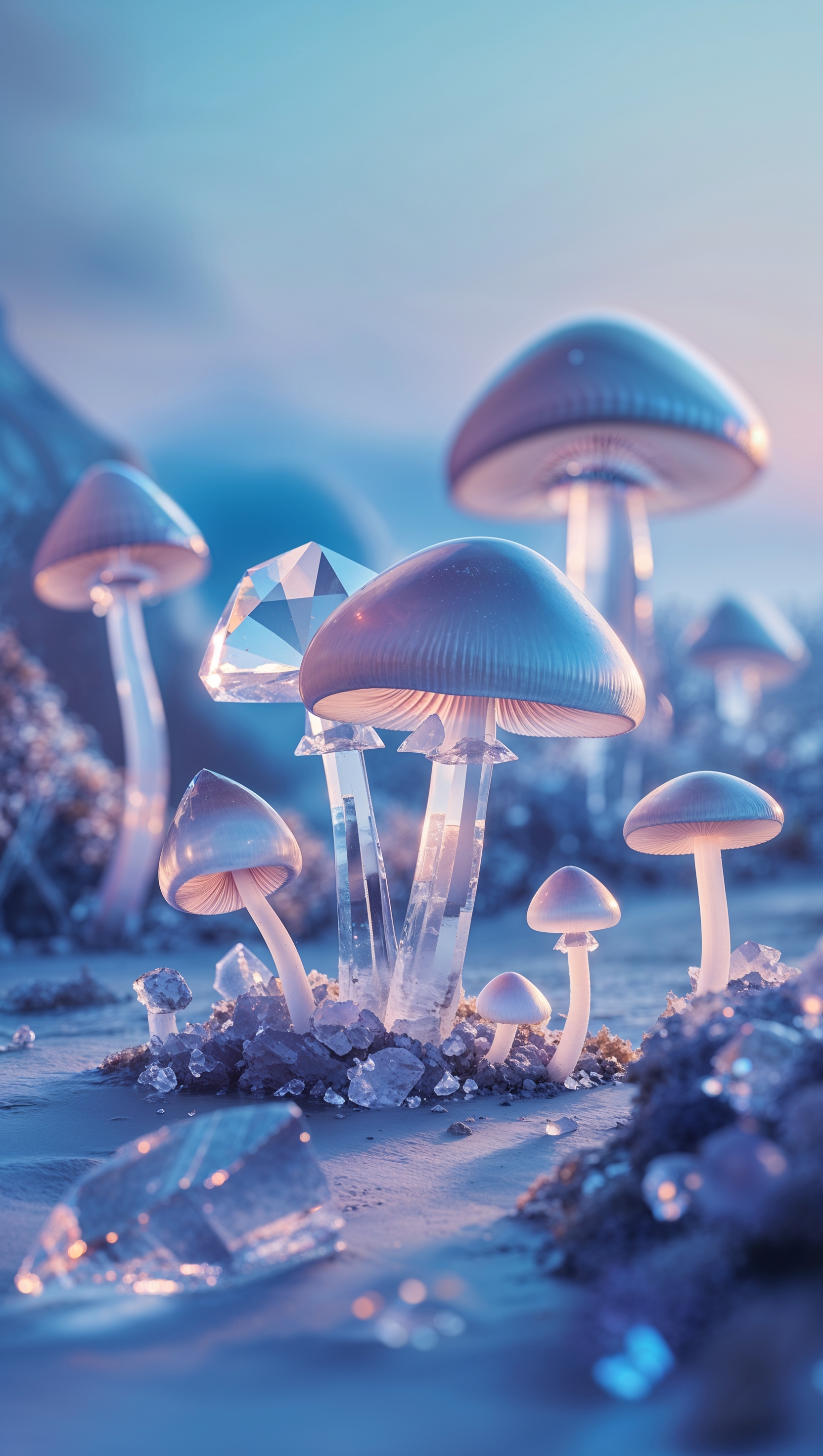 1664x2944 iPhone wallpaper with crystal and translucent mushrooms