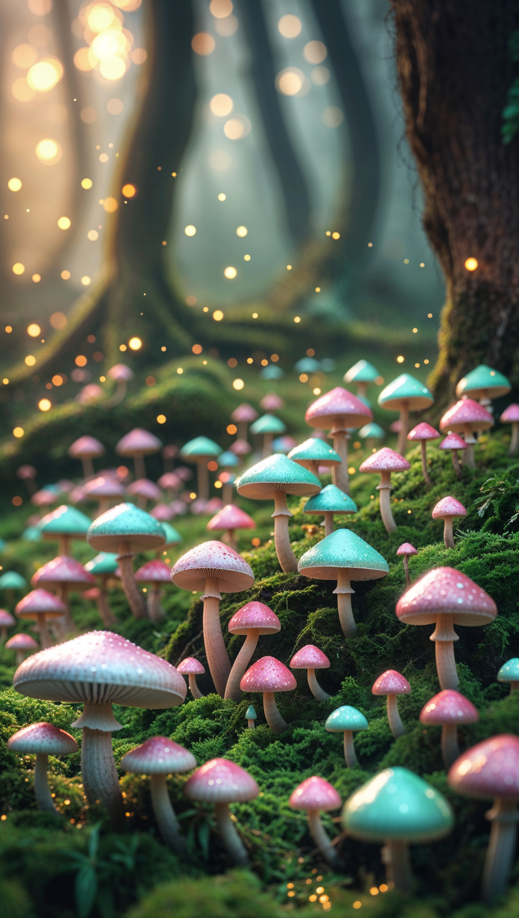 1664x2944 iPhone wallpaper with magical mushrooms in a fantasy world