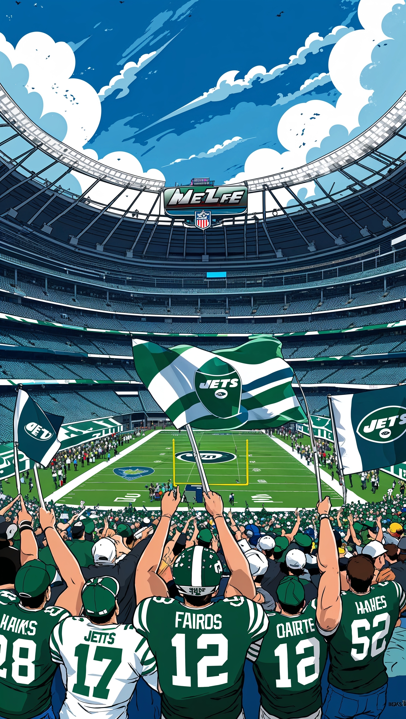 Cartoon-style NY Jets game with excited crowd for iPhone wallpaper 1664x2944 Cartoon-style NY Jets game with excited crowd for iPhone wallpaper