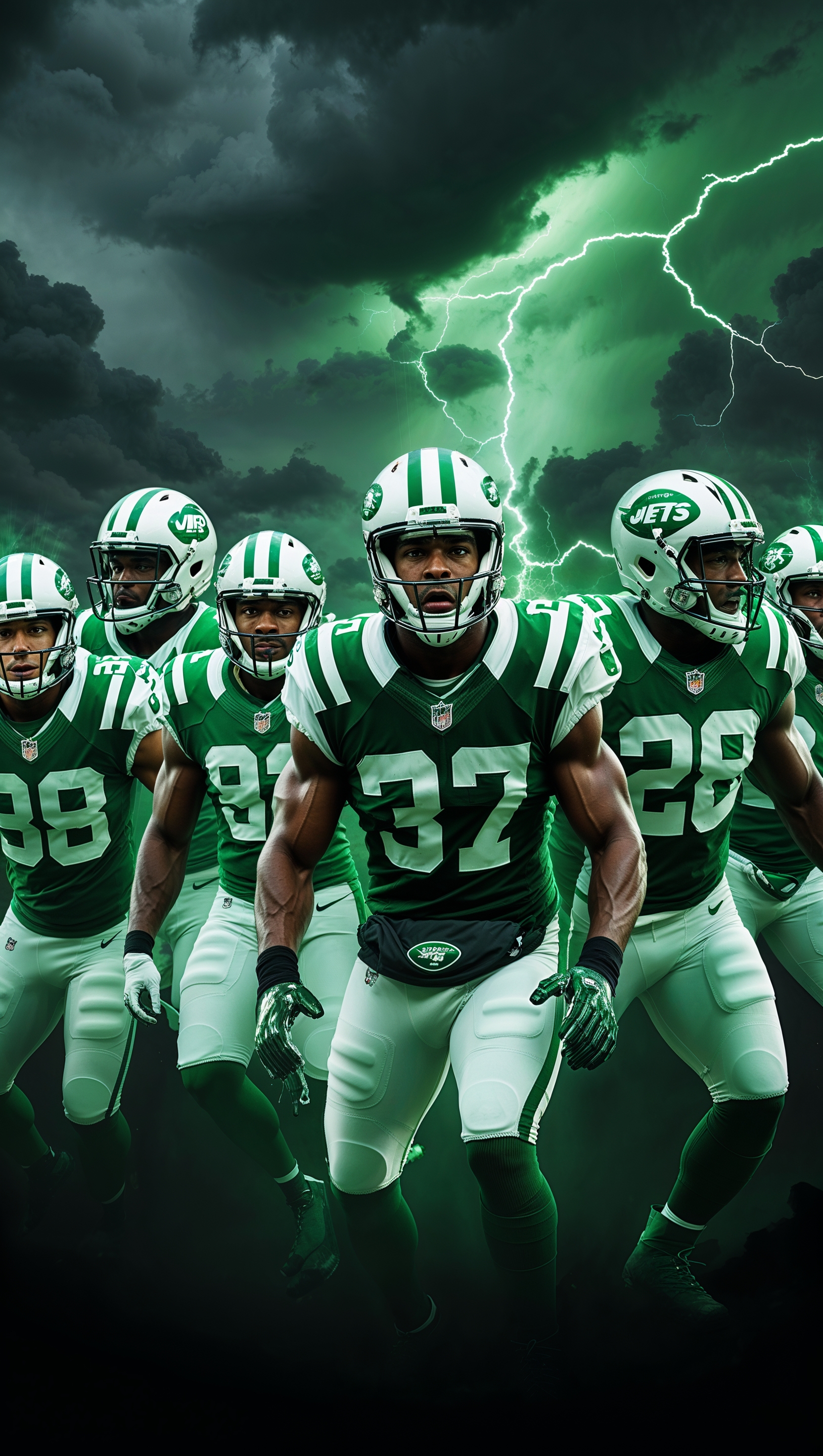 NY Jets players with stormy background and green light effect for iPhone wallpaper 1664x2944 NY Jets players with stormy background and green light effect for iPhone wallpaper