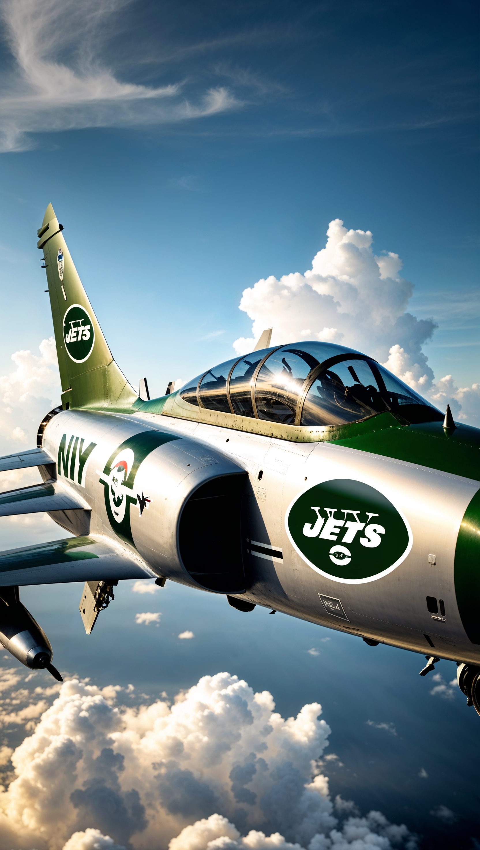 Fantasy-style flying jet with NY Jets logo for iPhone wallpaper 1664x2944 Fantasy-style flying jet with NY Jets logo for iPhone wallpaper