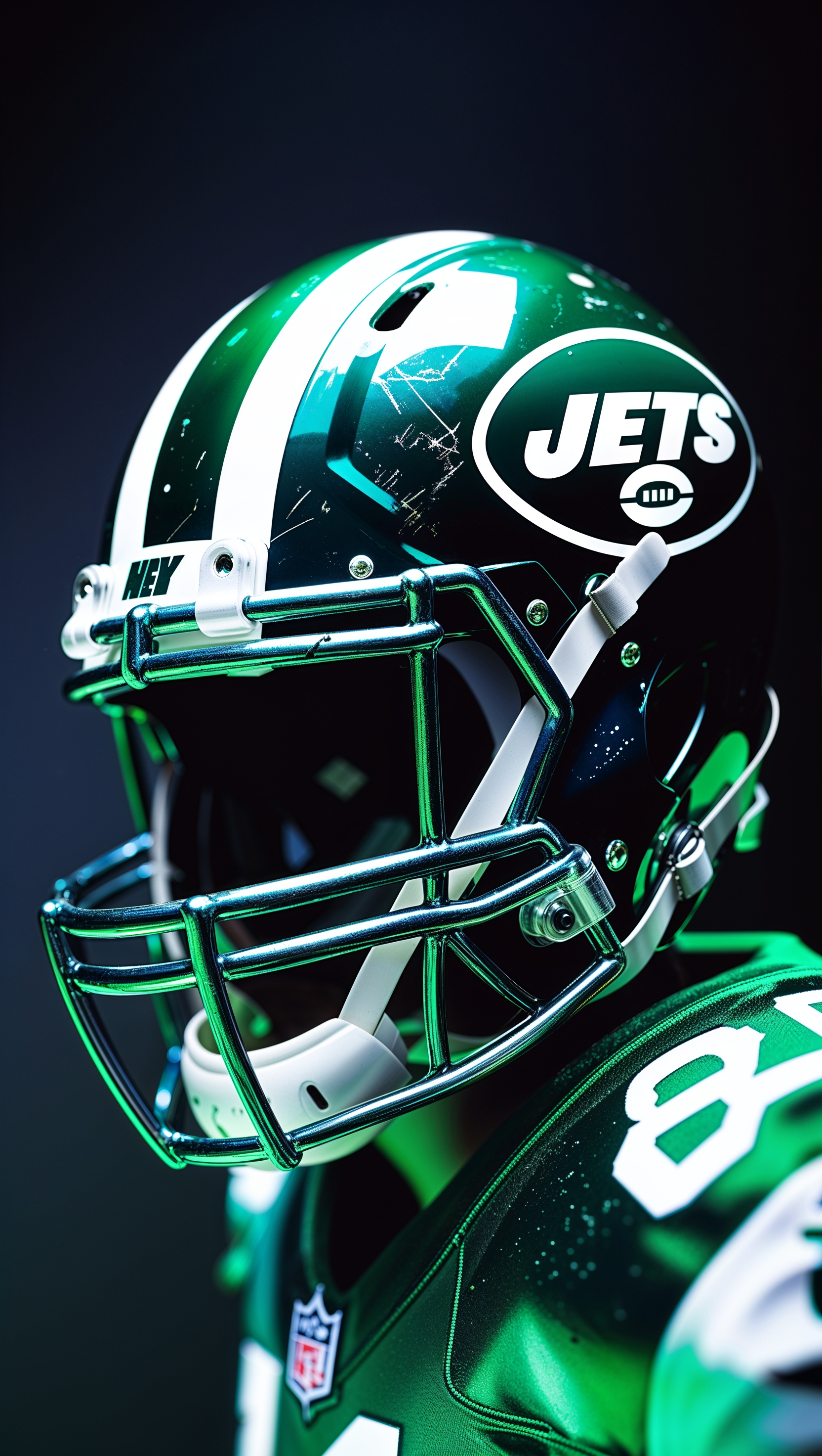 Close-up of NY Jets helmet reflecting stadium lights for iPhone wallpaper 1664x2944 Close-up of NY Jets helmet reflecting stadium lights for iPhone wallpaper