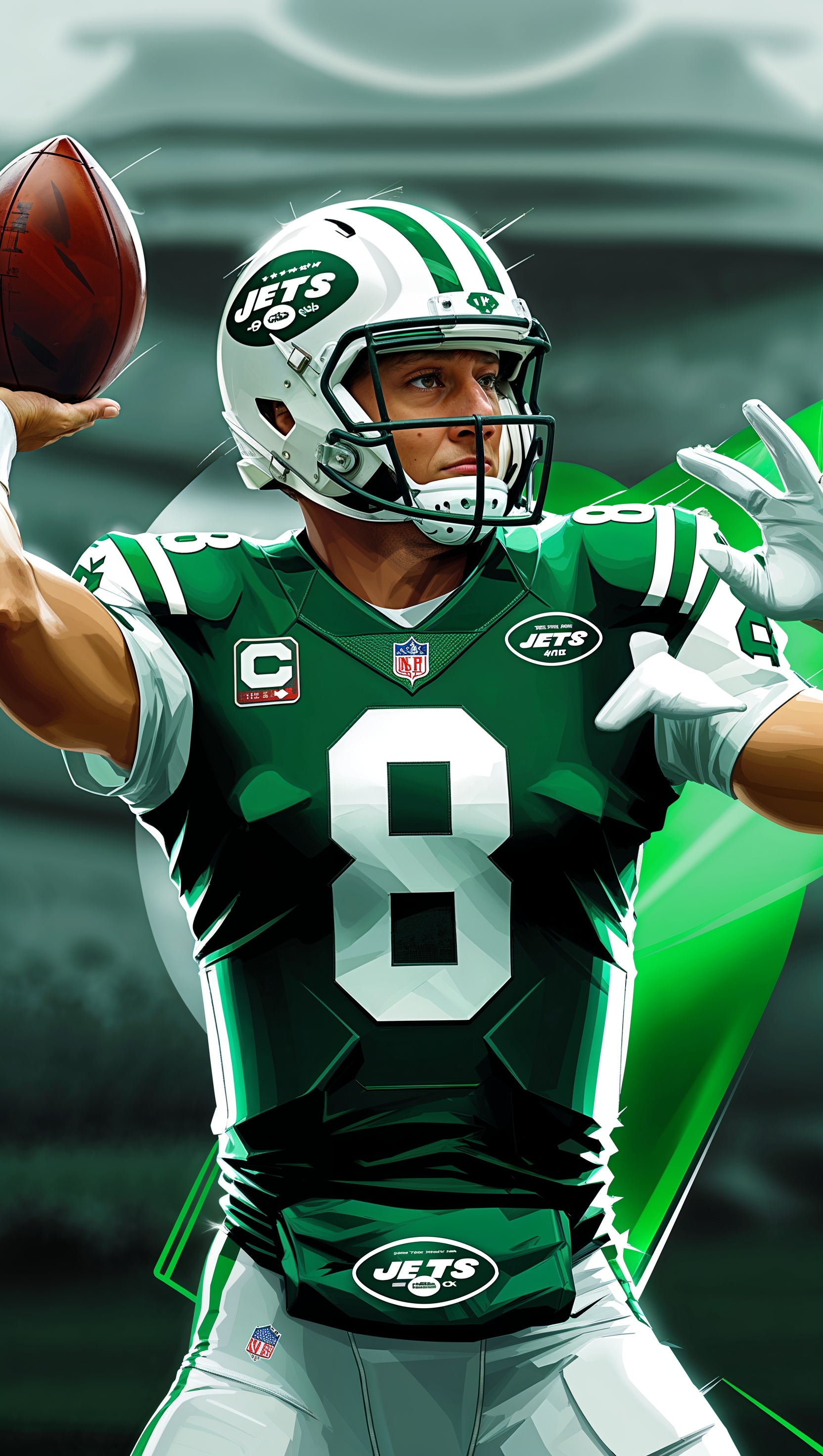 Digital art of NY Jets quarterback number 8 throwing a football for iPhone wallpaper 1664x2944 Digital art of NY Jets quarterback number 8 throwing a football for iPhone wallpaper