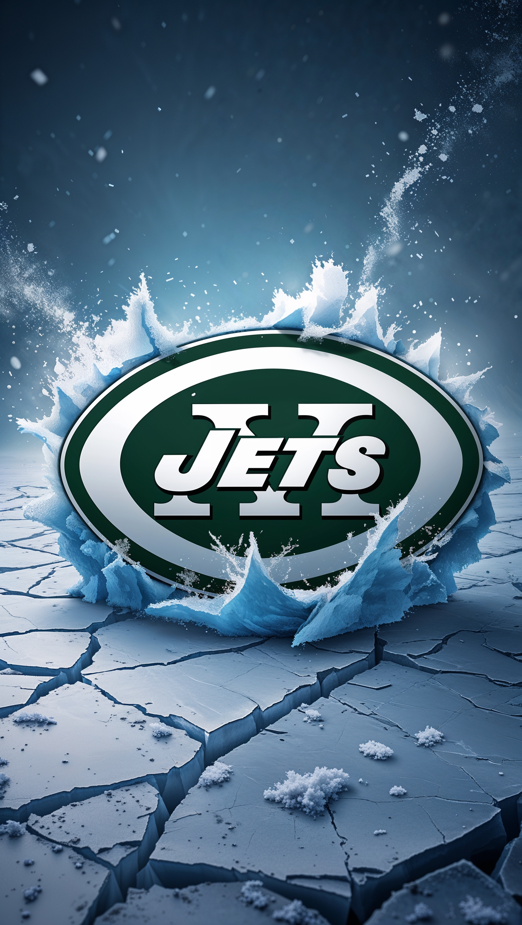 NY Jets logo on cracked ice with cold effect for iPhone wallpaper 1664x2944 NY Jets logo on cracked ice with cold effect for iPhone wallpaper