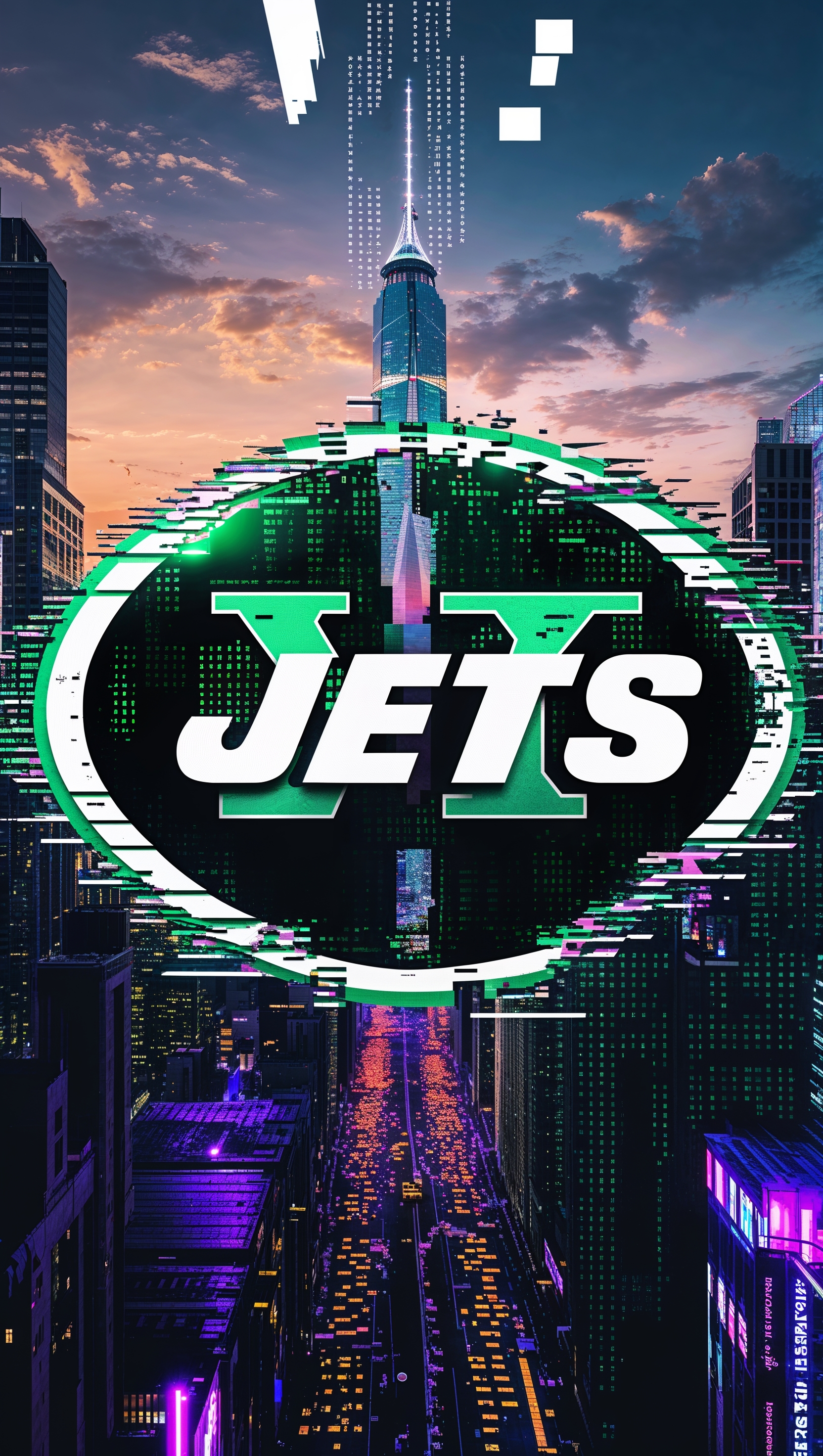 Cyberpunk background with cityscape and NY Jets logo for iPhone wallpaper 1664x2944 Cyberpunk background with cityscape and NY Jets logo for iPhone wallpaper