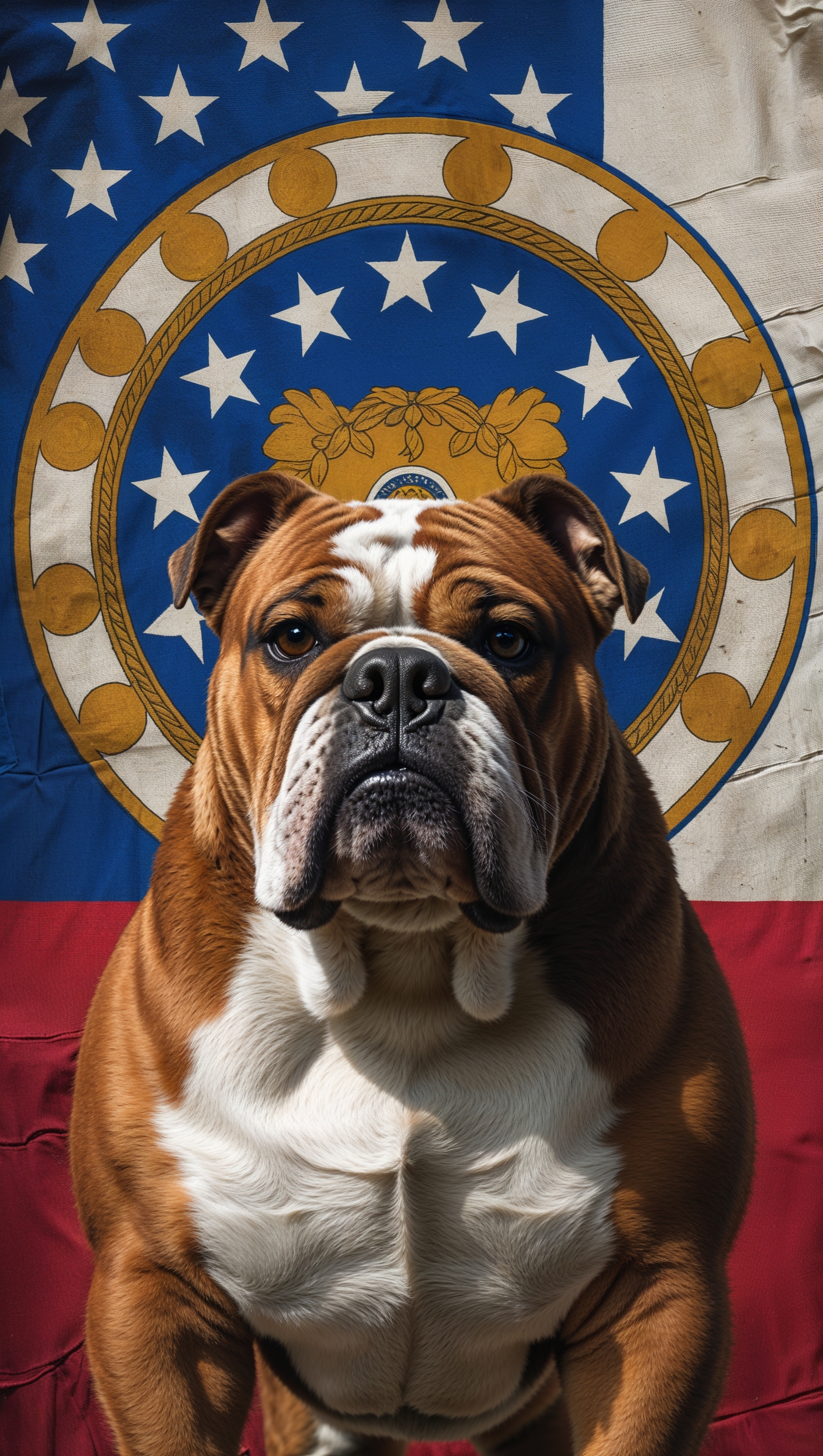 1664x2944 Georgia Bulldog with Georgia state flag in the background