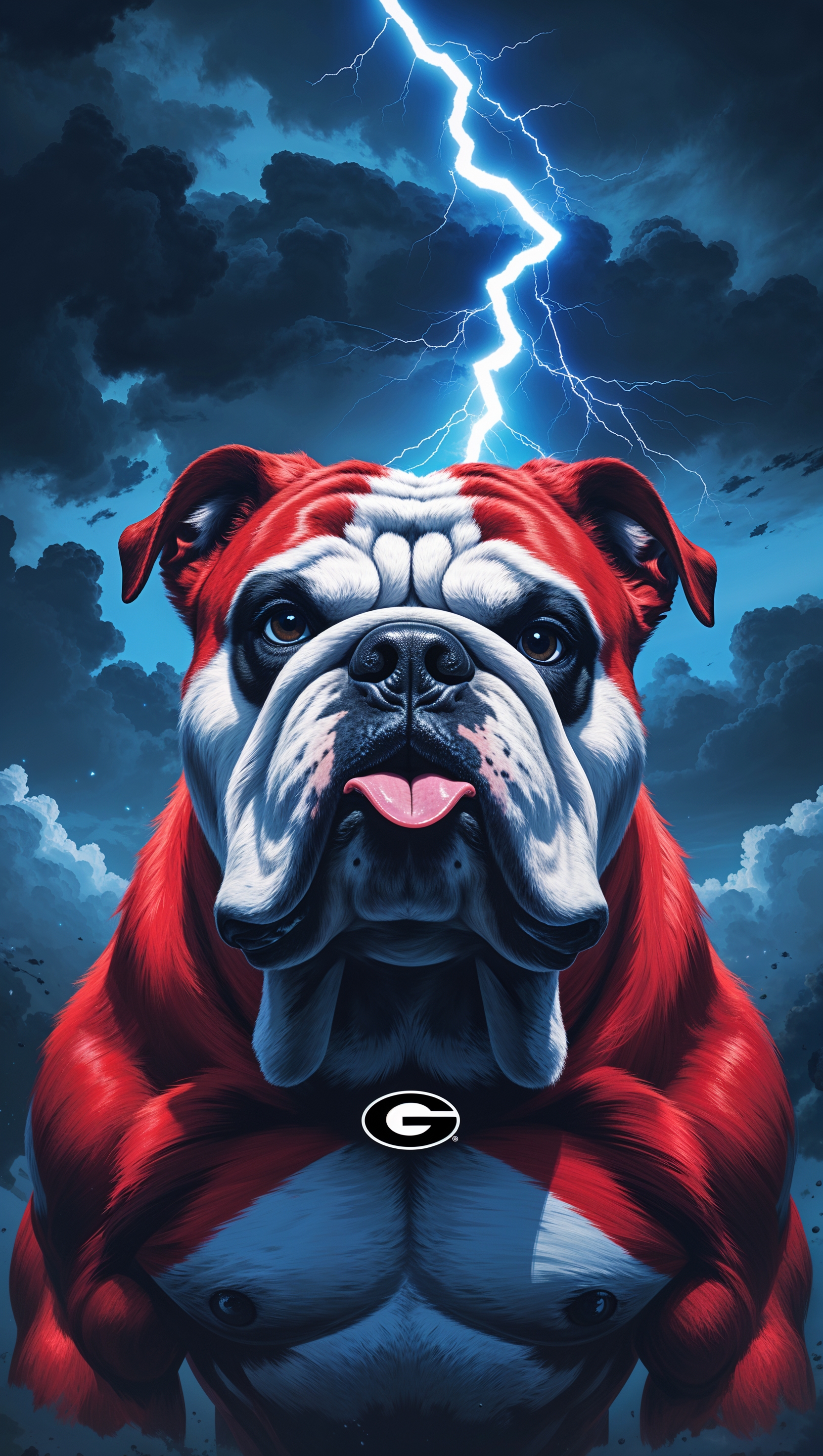 1664x2944 iPhone wallpaper with Georgia Bulldog and lightning in the sky