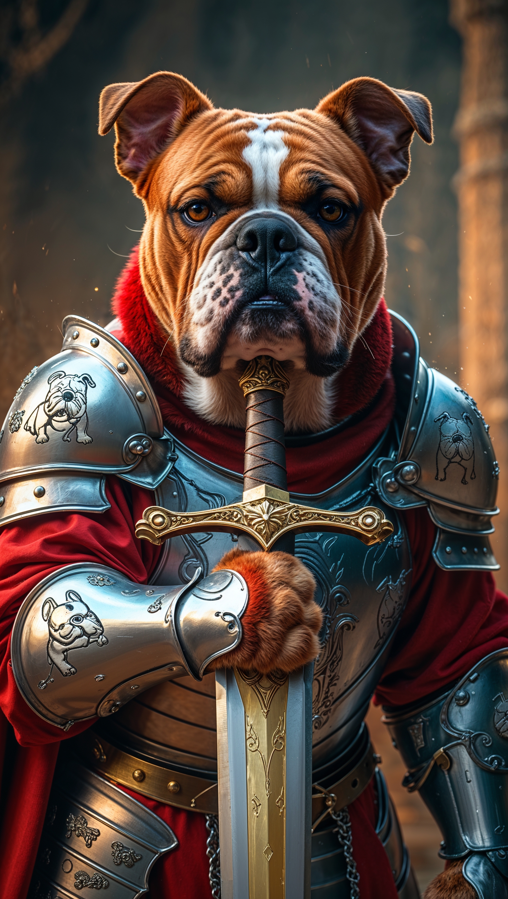 1664x2944 Fantasy-style Georgia Bulldog with armor and sword