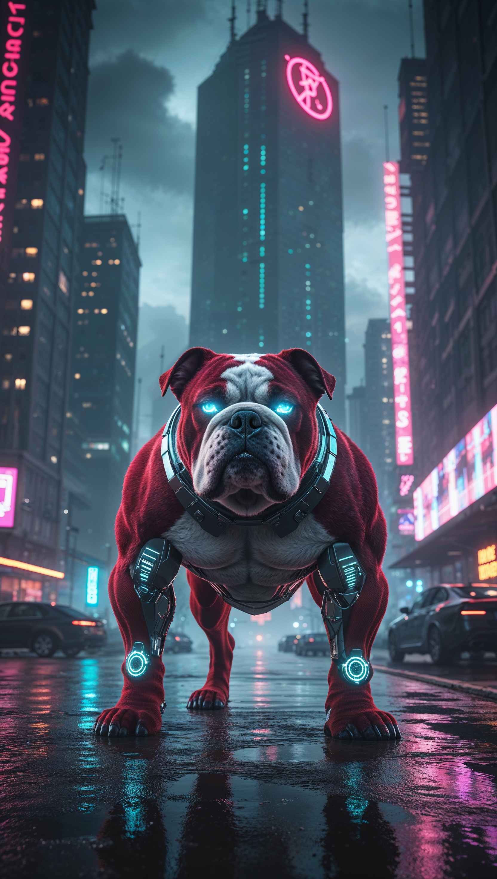 1664x2944 Georgia Bulldog in a futuristic cyberpunk setting