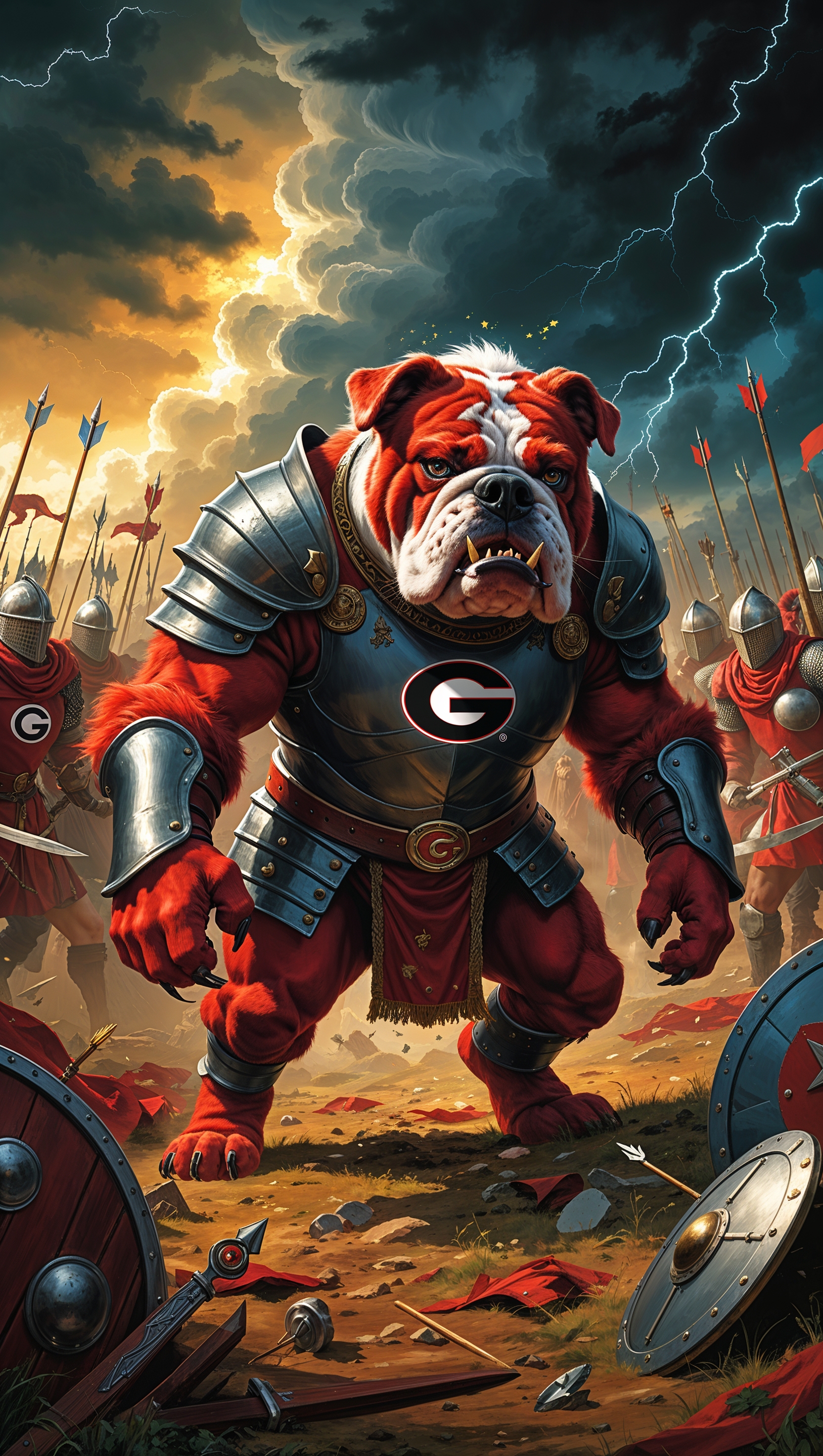 1664x2944 Fantasy painting of Georgia Bulldog in a battlefield
