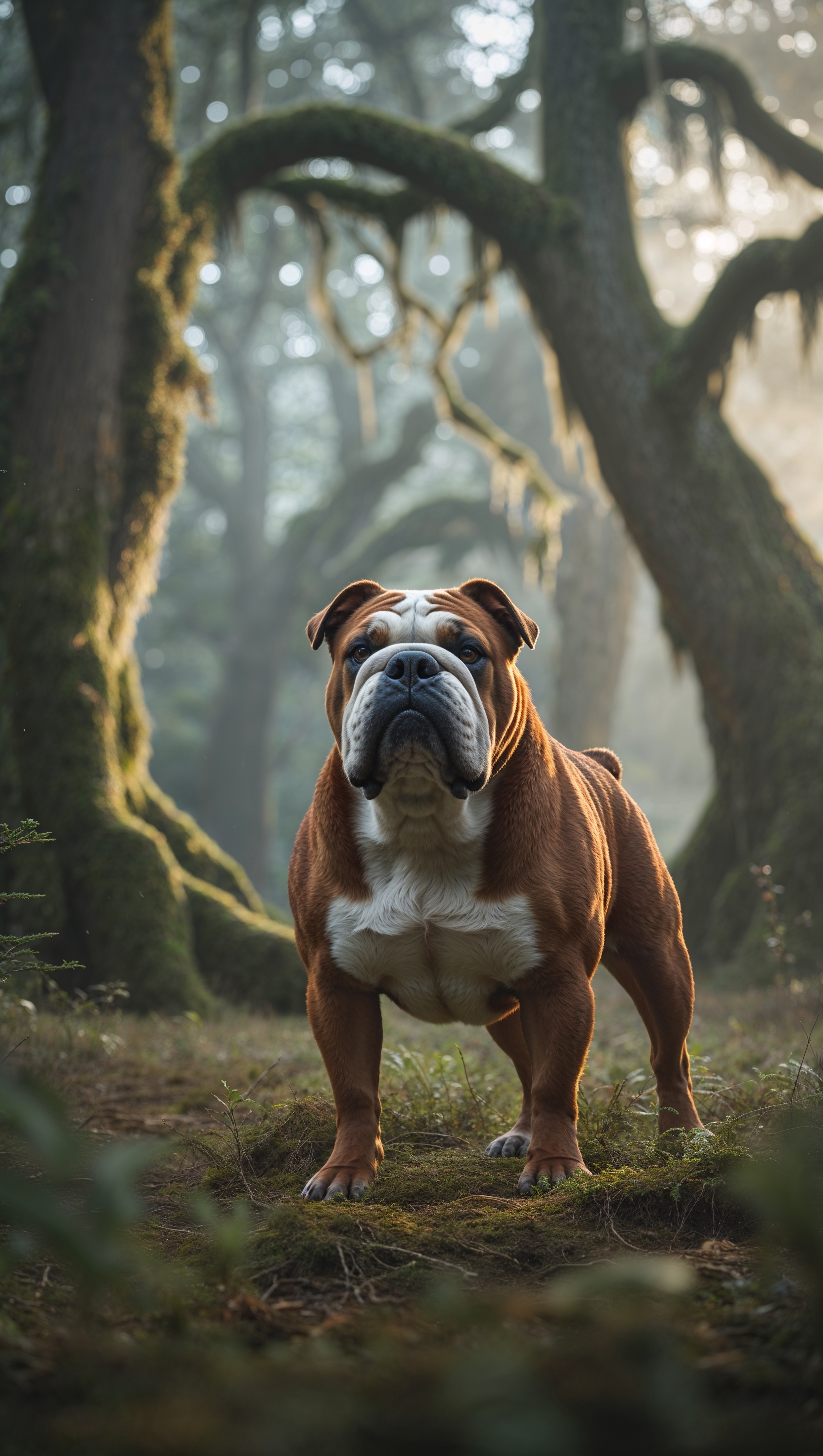 1664x2944 Georgia Bulldog in a forest with soft lighting