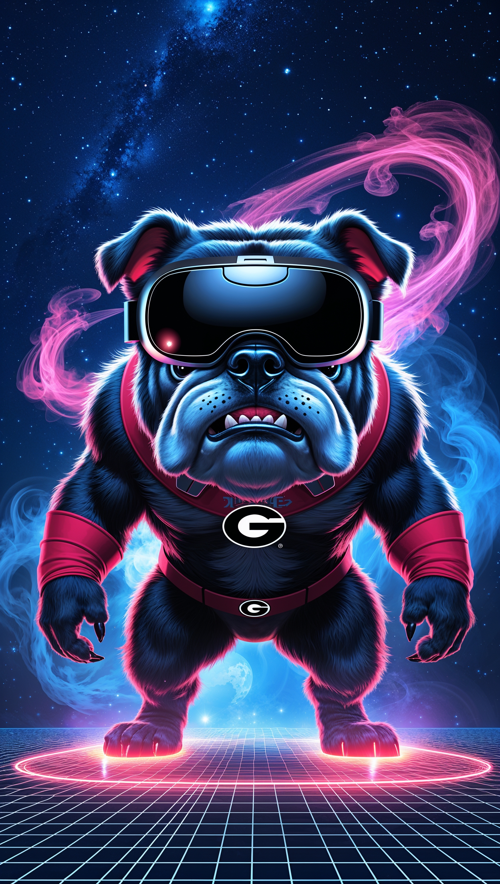 1664x2944 Georgia Bulldog with VR headset in a digital environment