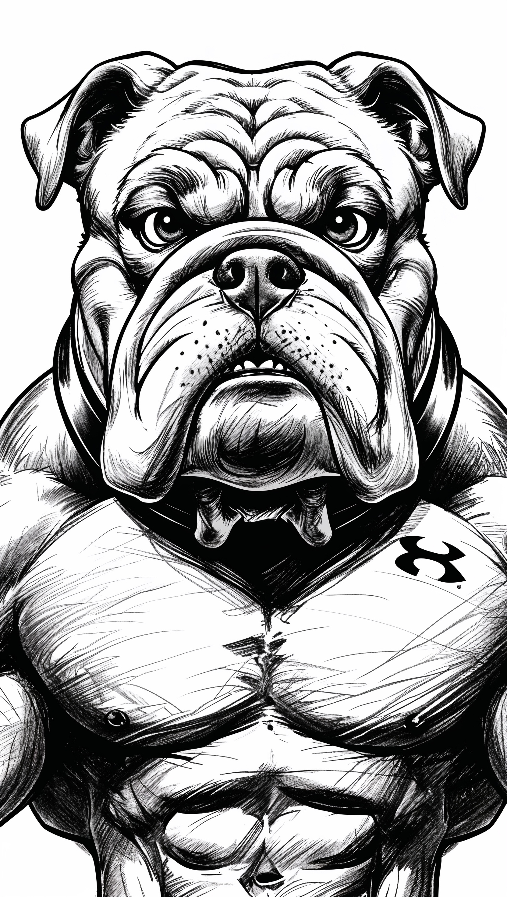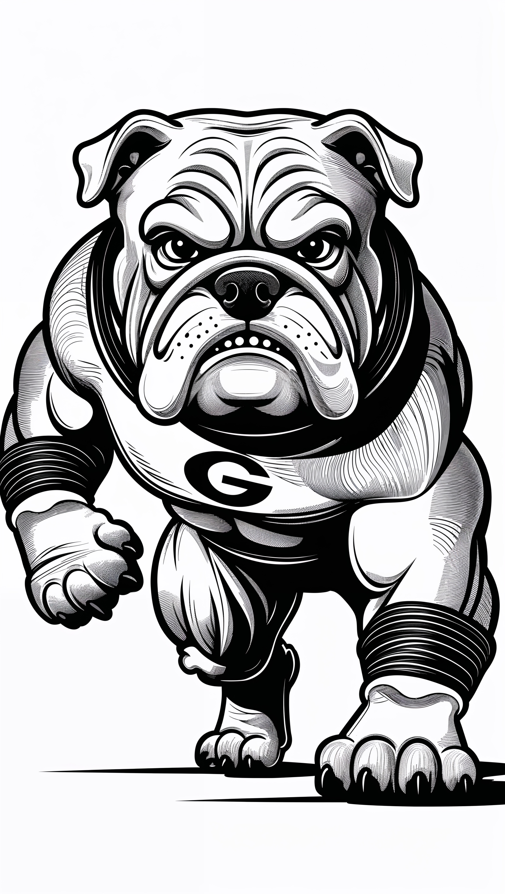 1664x2944 Black and white sketch of Georgia Bulldog for iPhone