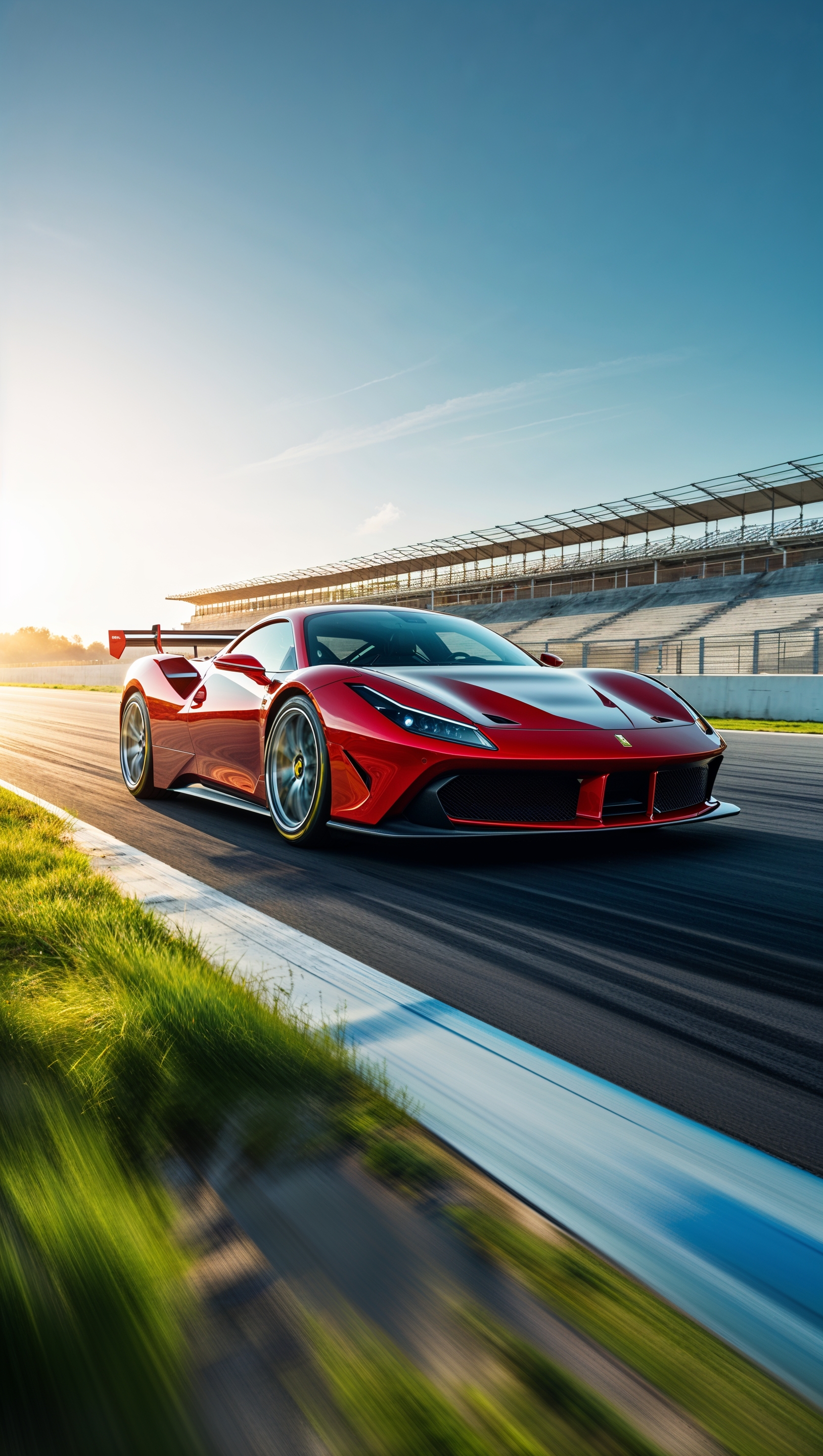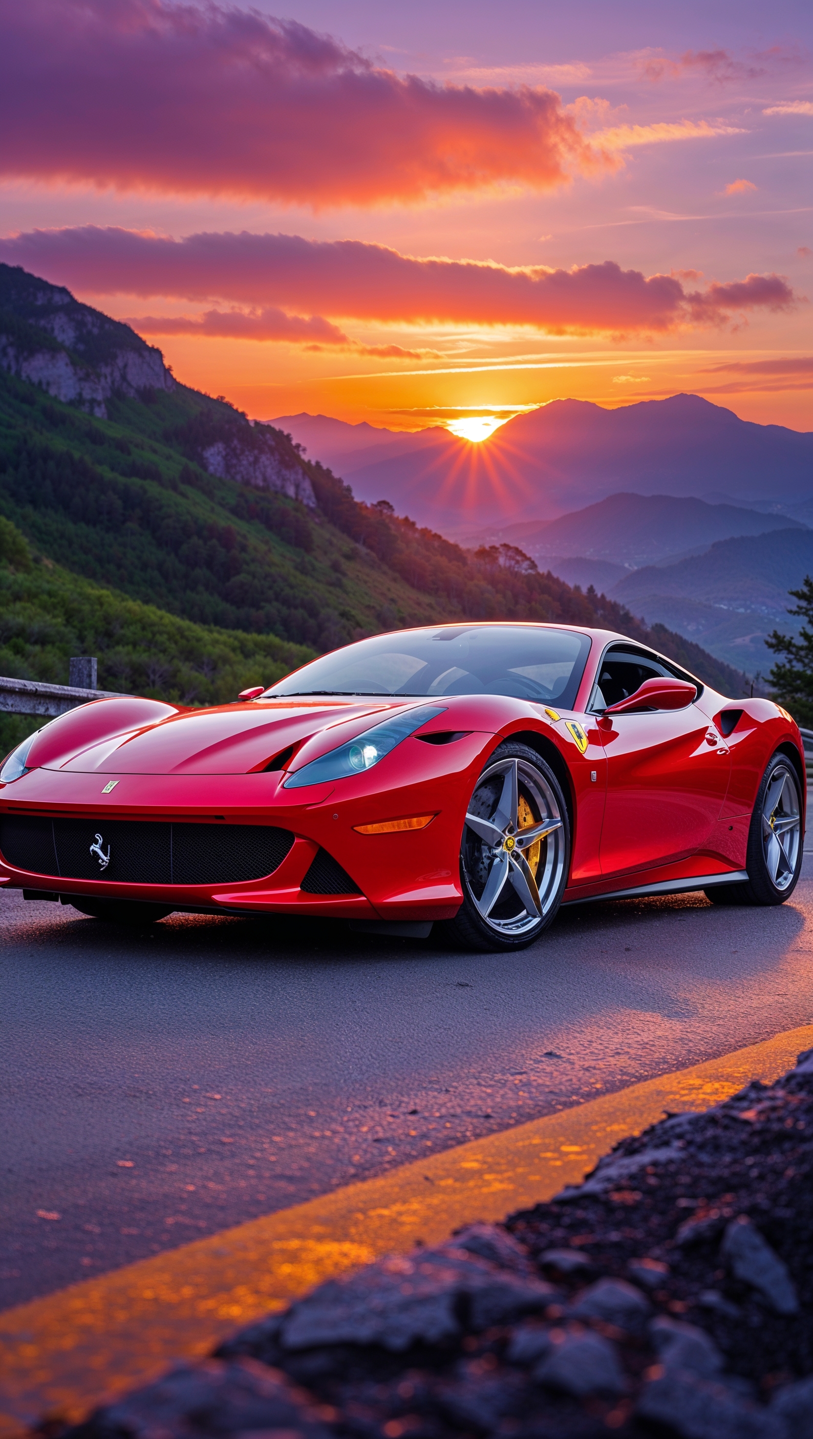 1664x2944 iPhone wallpaper with Ferrari car in golden sunset light