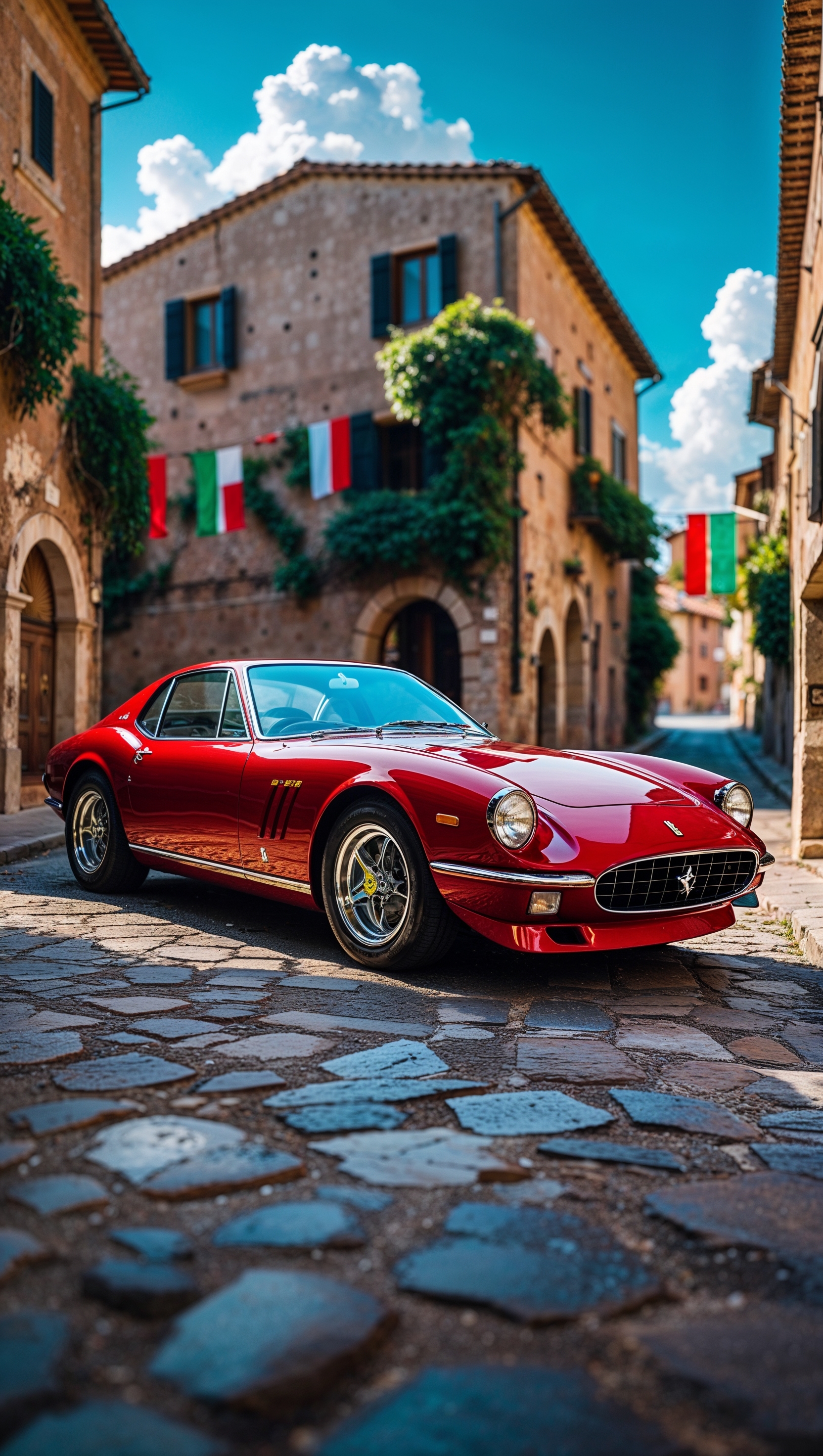 1664x2944 iPhone wallpaper with classic red Ferrari on Italian streets