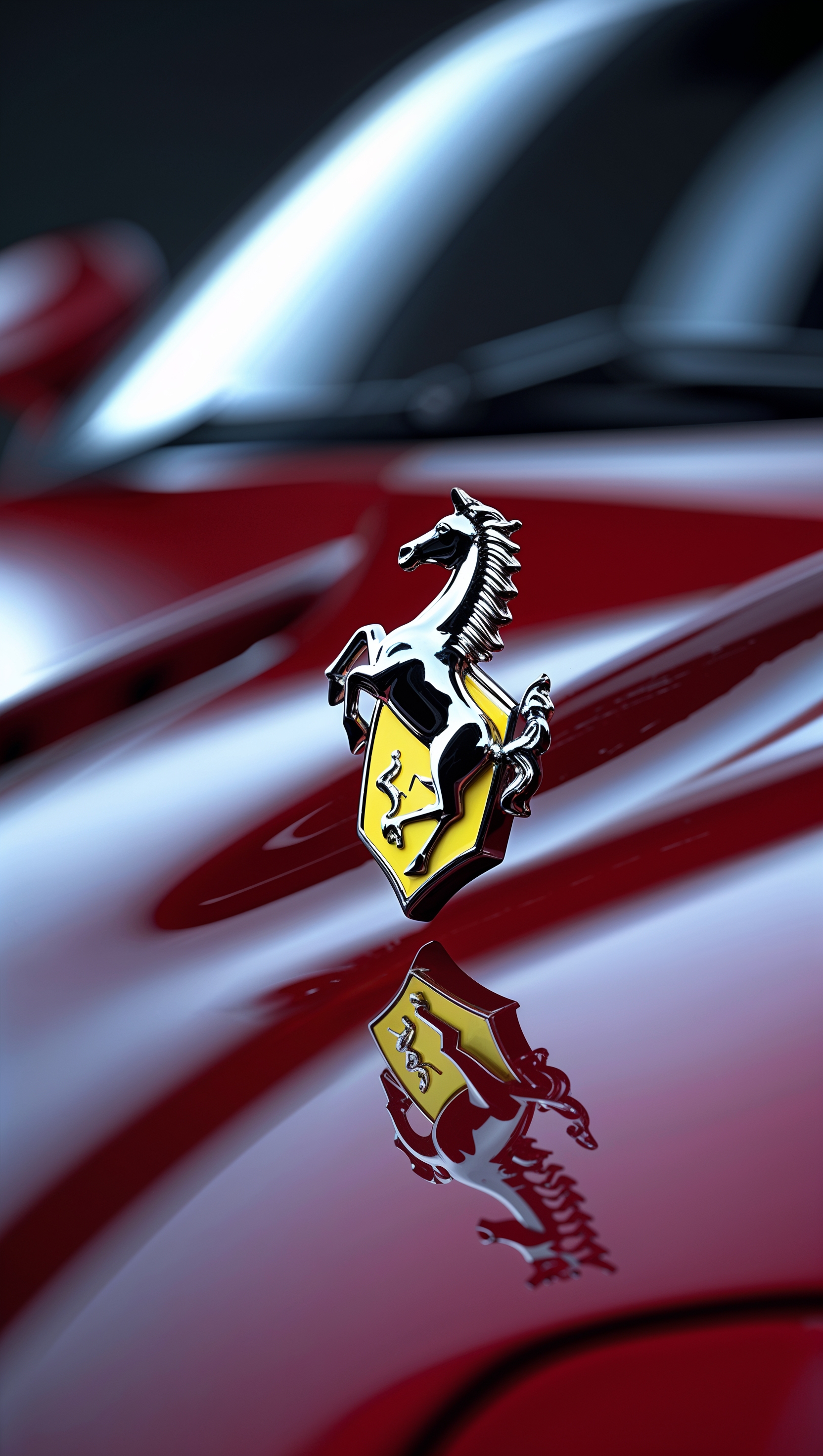 1664x2944 iPhone wallpaper close-up of Ferrari logo on car hood