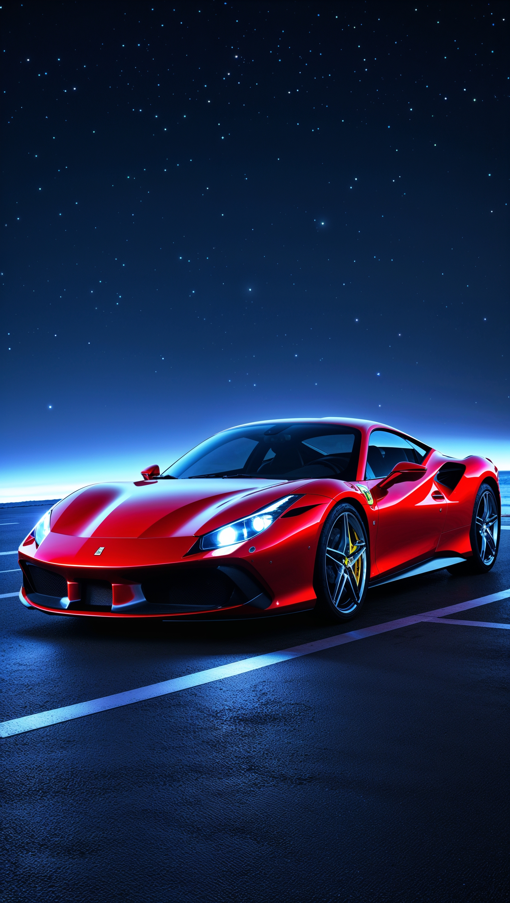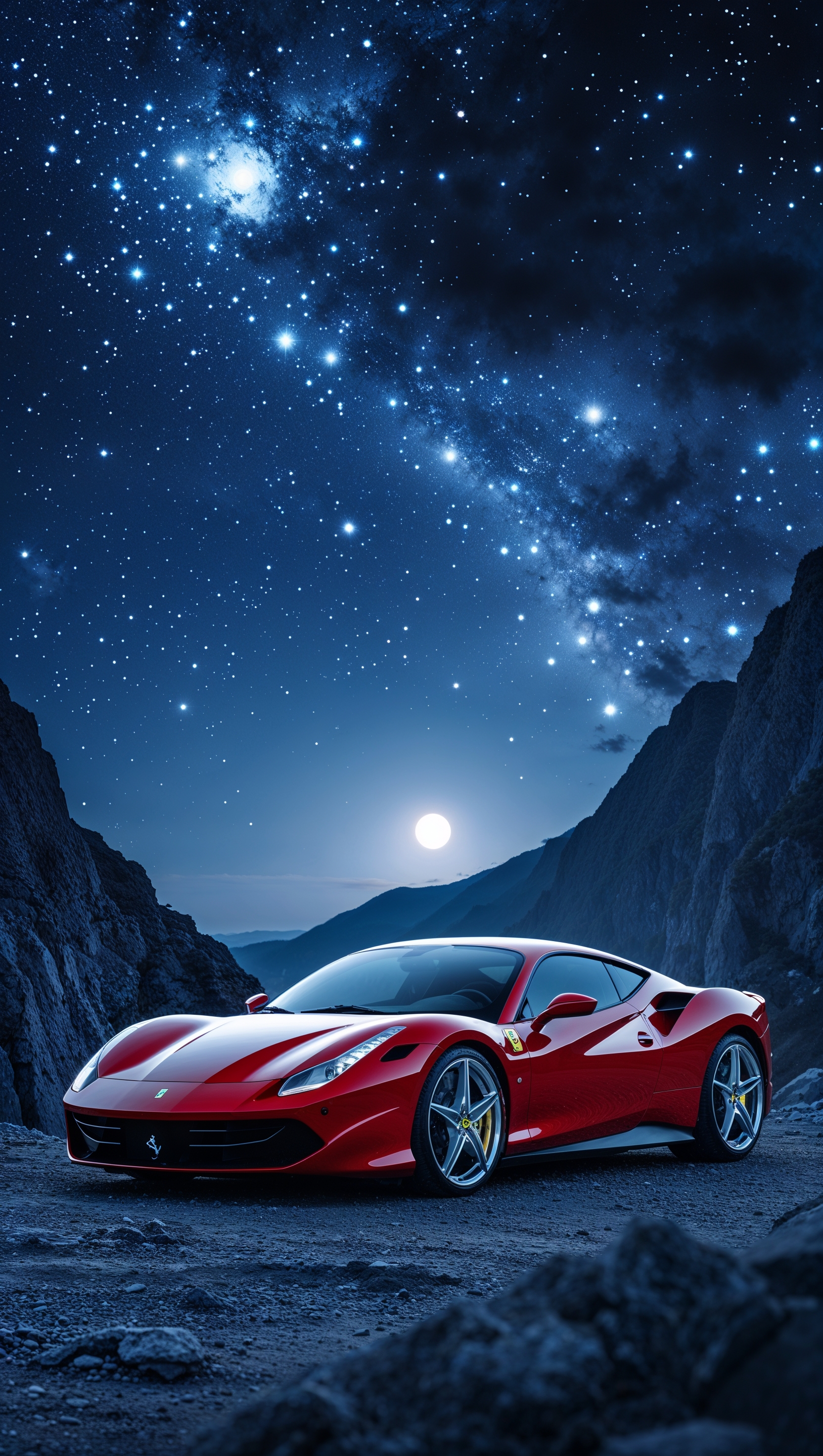 1664x2944 iPhone wallpaper with Ferrari car under a starry night sky