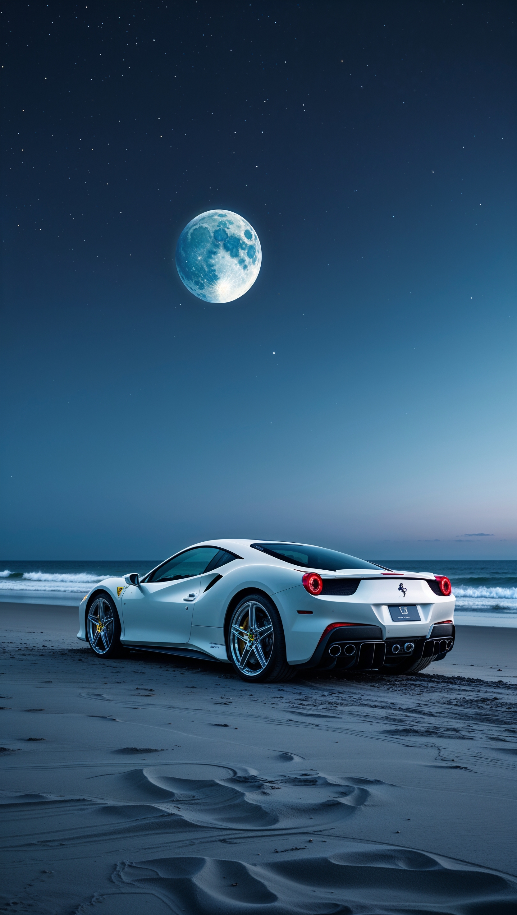 1664x2944 iPhone wallpaper with white Ferrari under moonlight