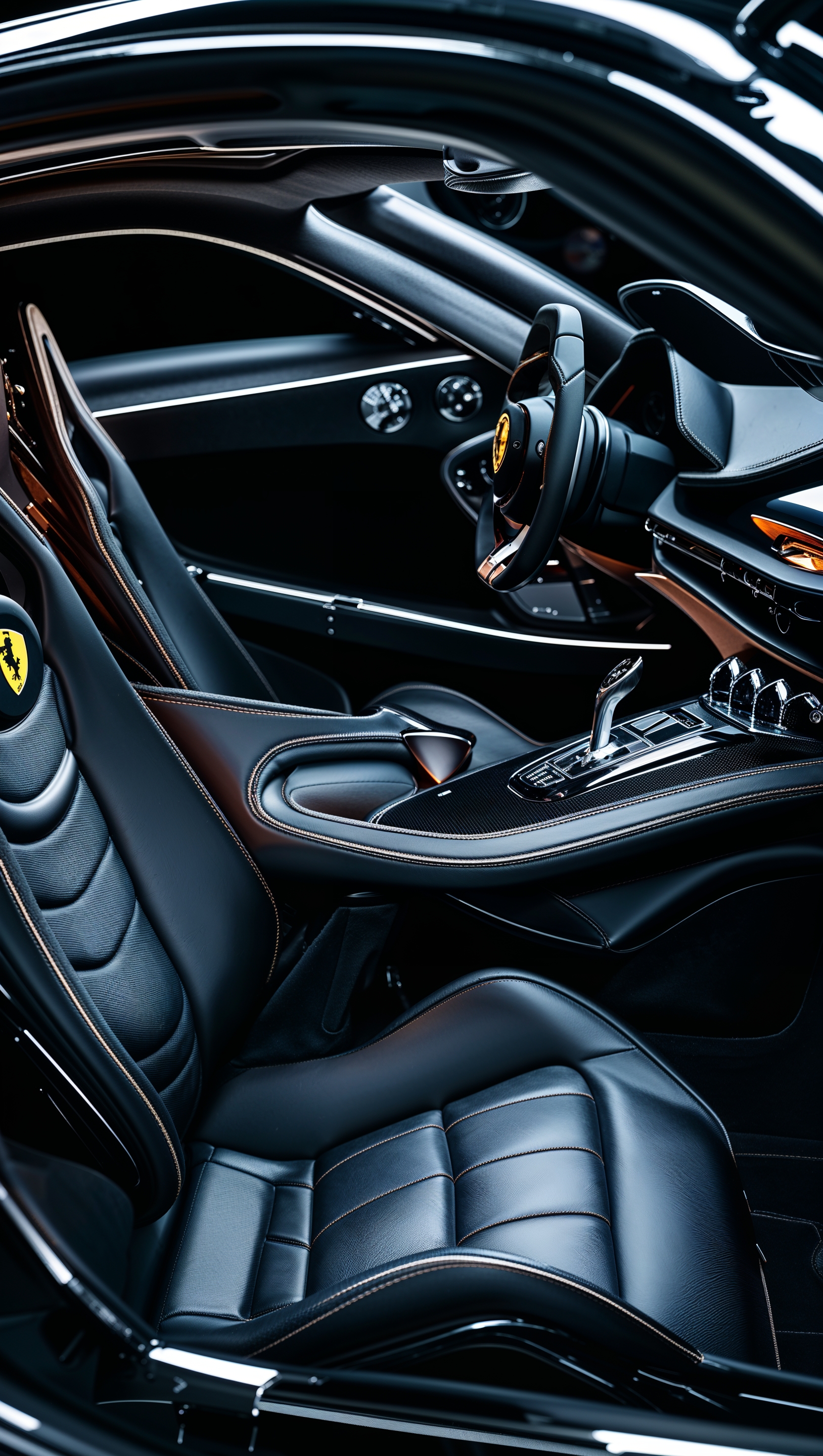 1664x2944 iPhone wallpaper showing the luxurious Ferrari interior cabin