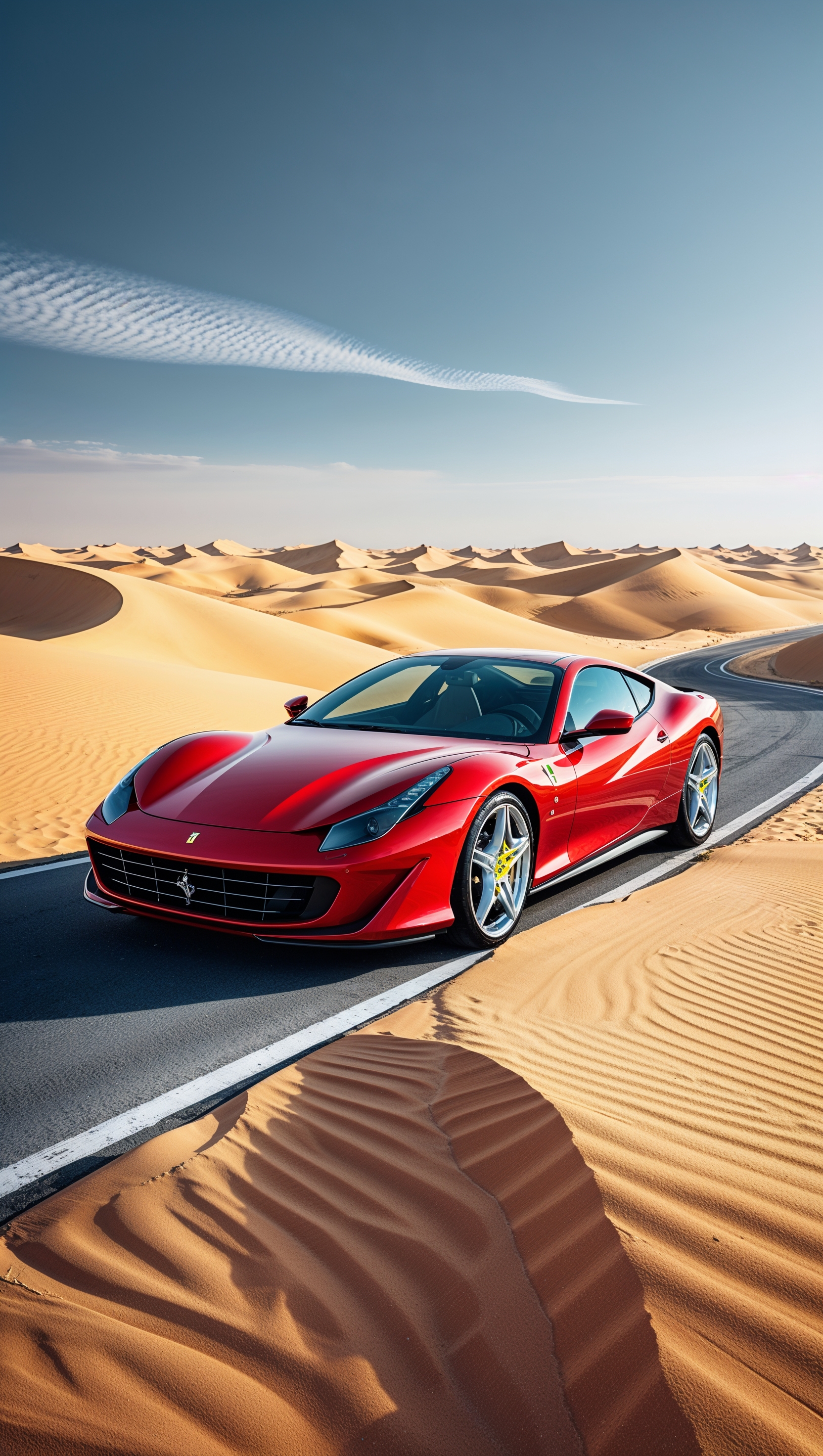 1664x2944 iPhone wallpaper with Ferrari beside desert road