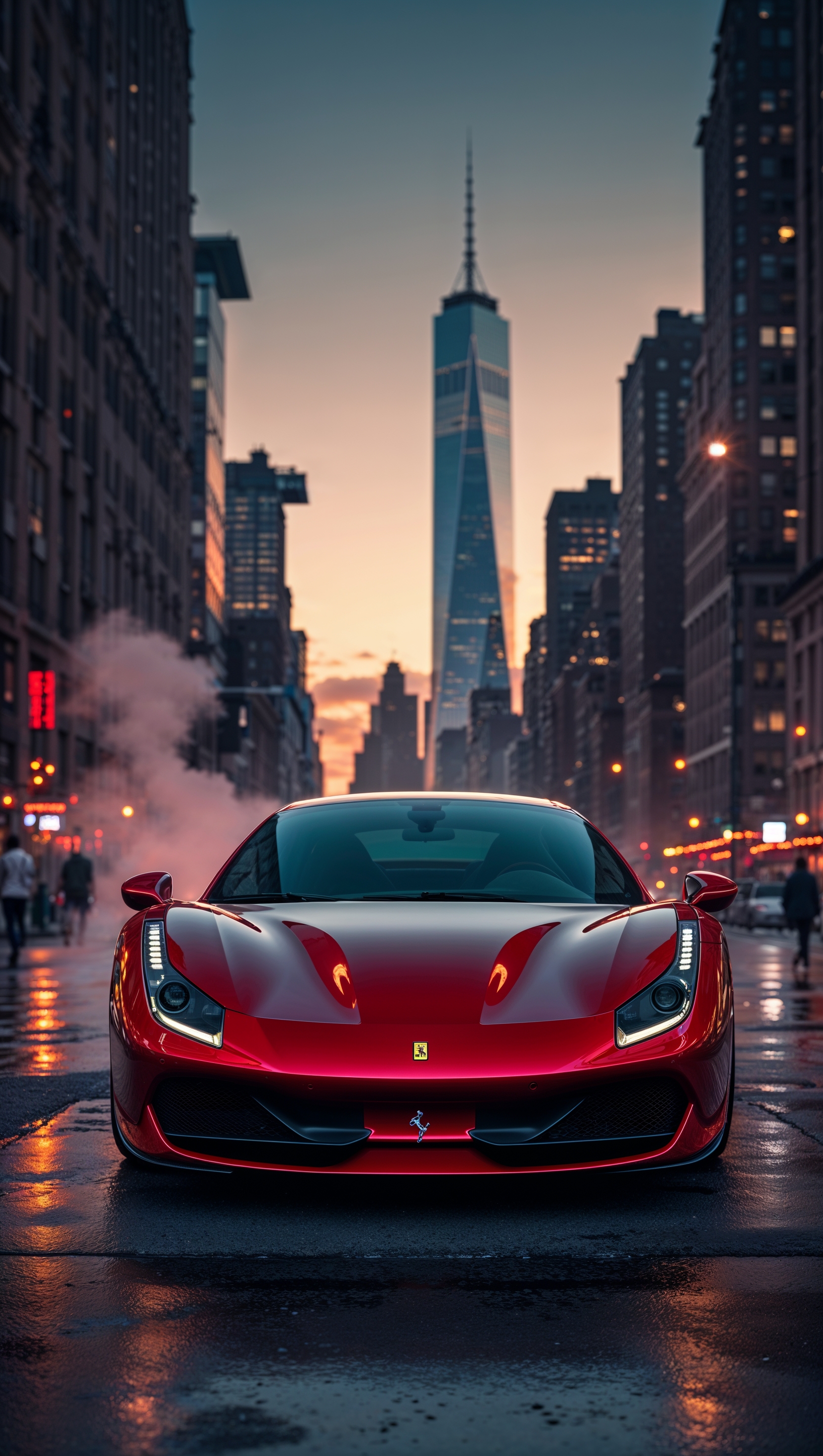 1664x2944 iPhone wallpaper with red Ferrari and New York City background