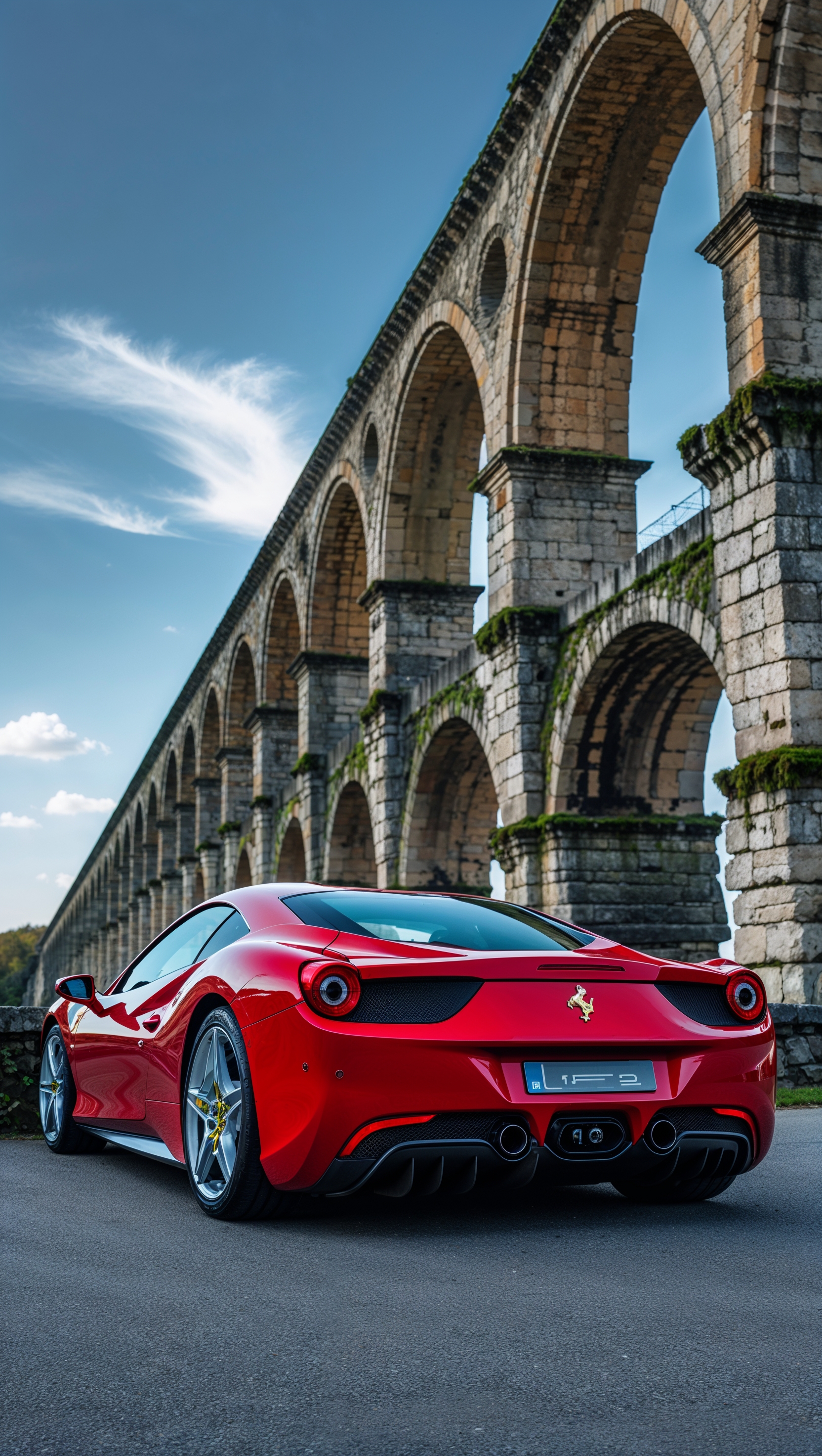 1664x2944 iPhone wallpaper with red Ferrari near famous bridge