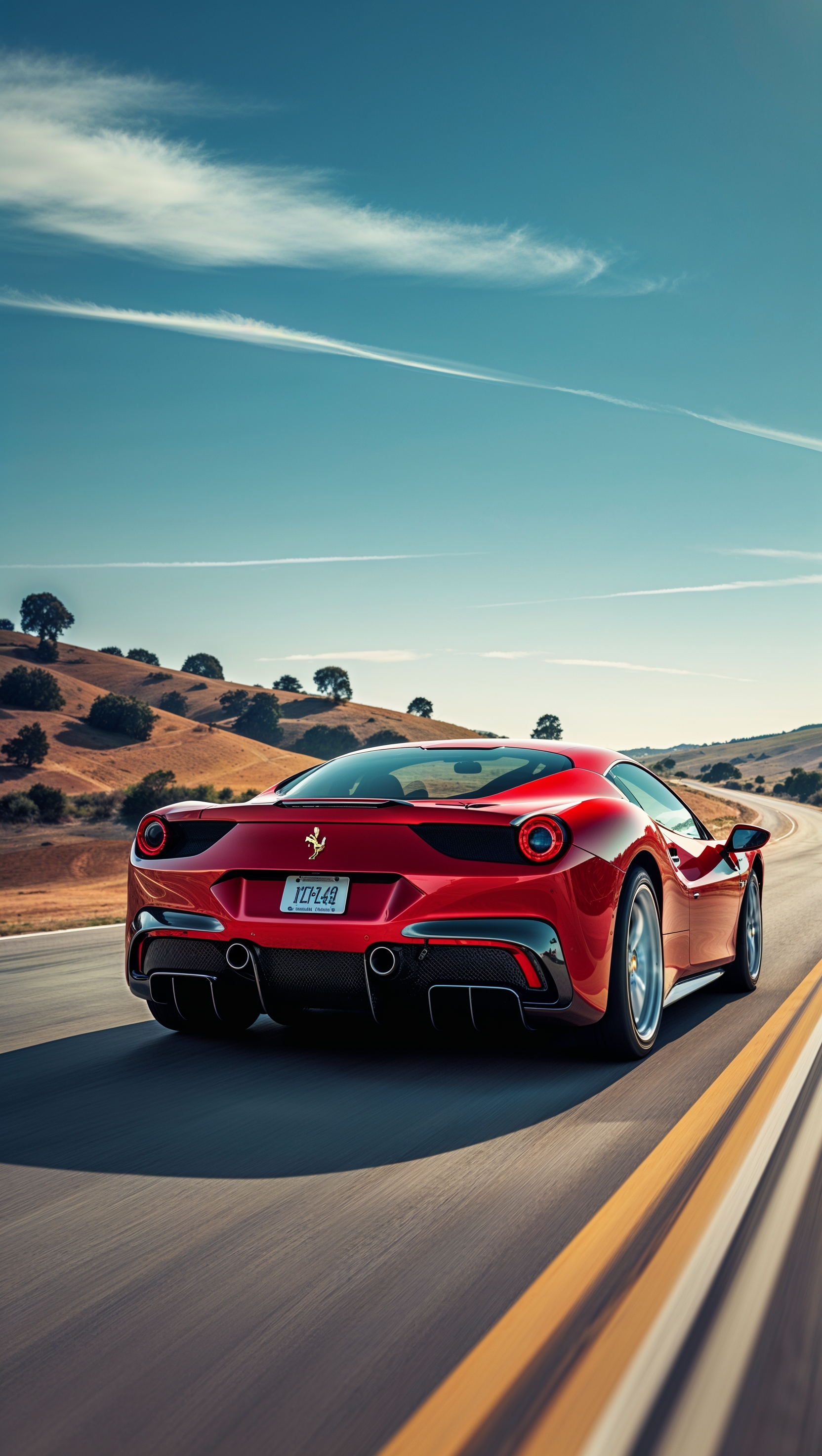 1664x2944 iPhone wallpaper with Ferrari rear view and open road