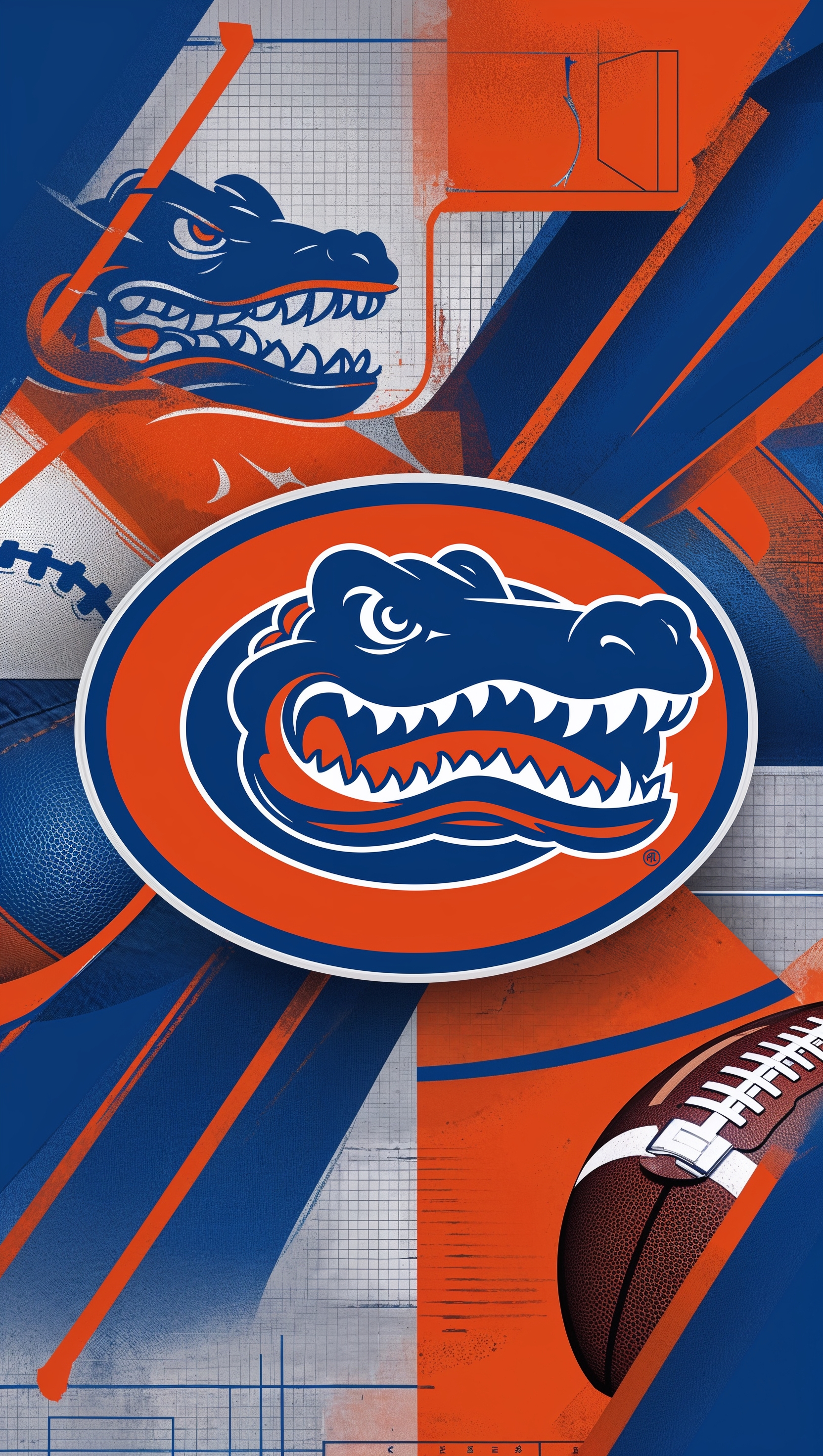 1664x2944 iPhone wallpaper featuring University of Florida logo and sports elements