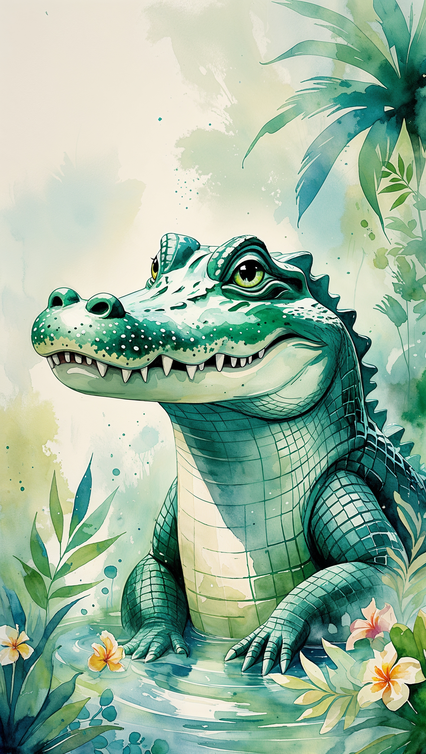 1664x2944 Watercolor style iPhone wallpaper with an alligator