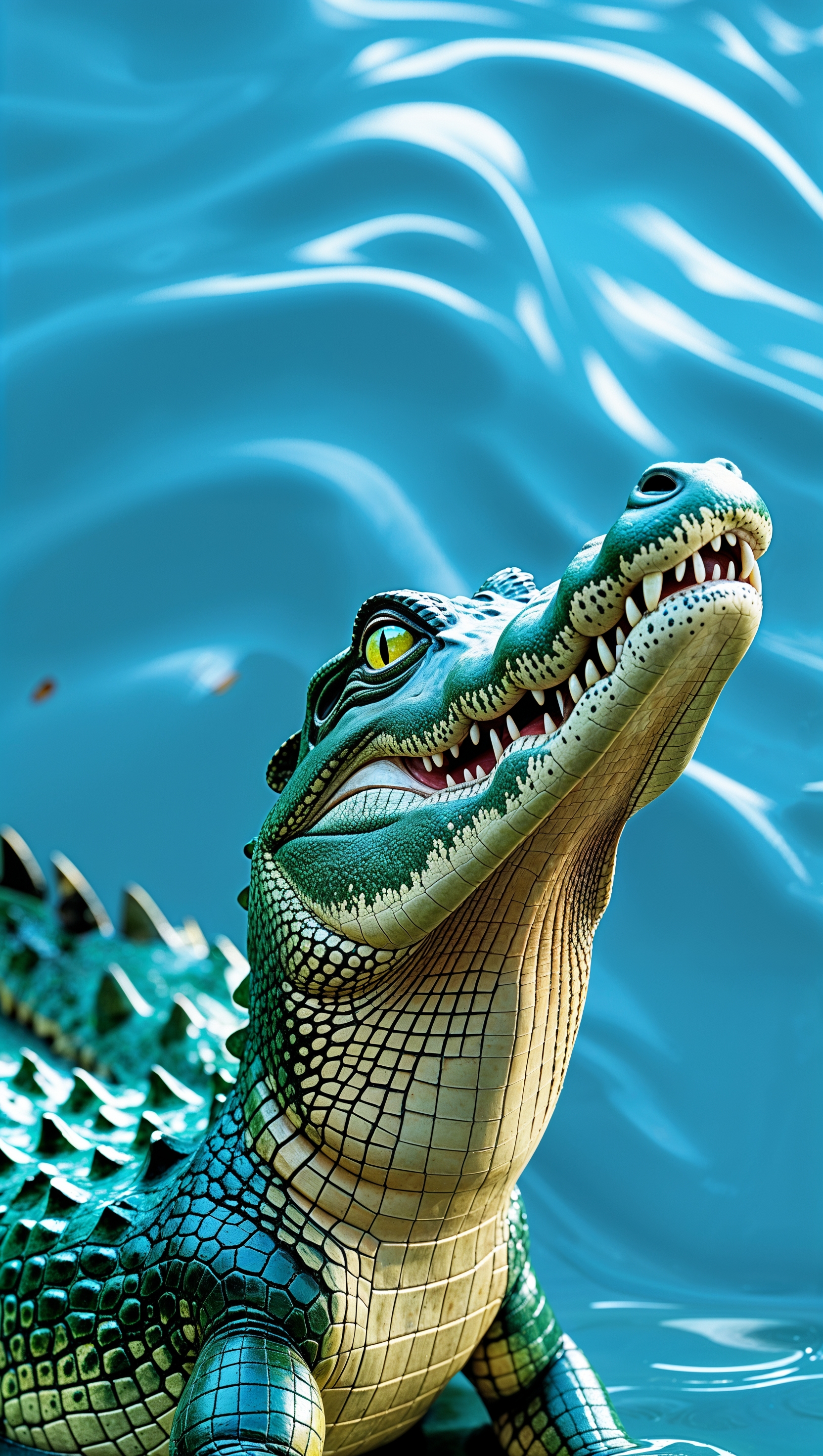 1664x2944 iPhone wallpaper with an alligator and bright blue background