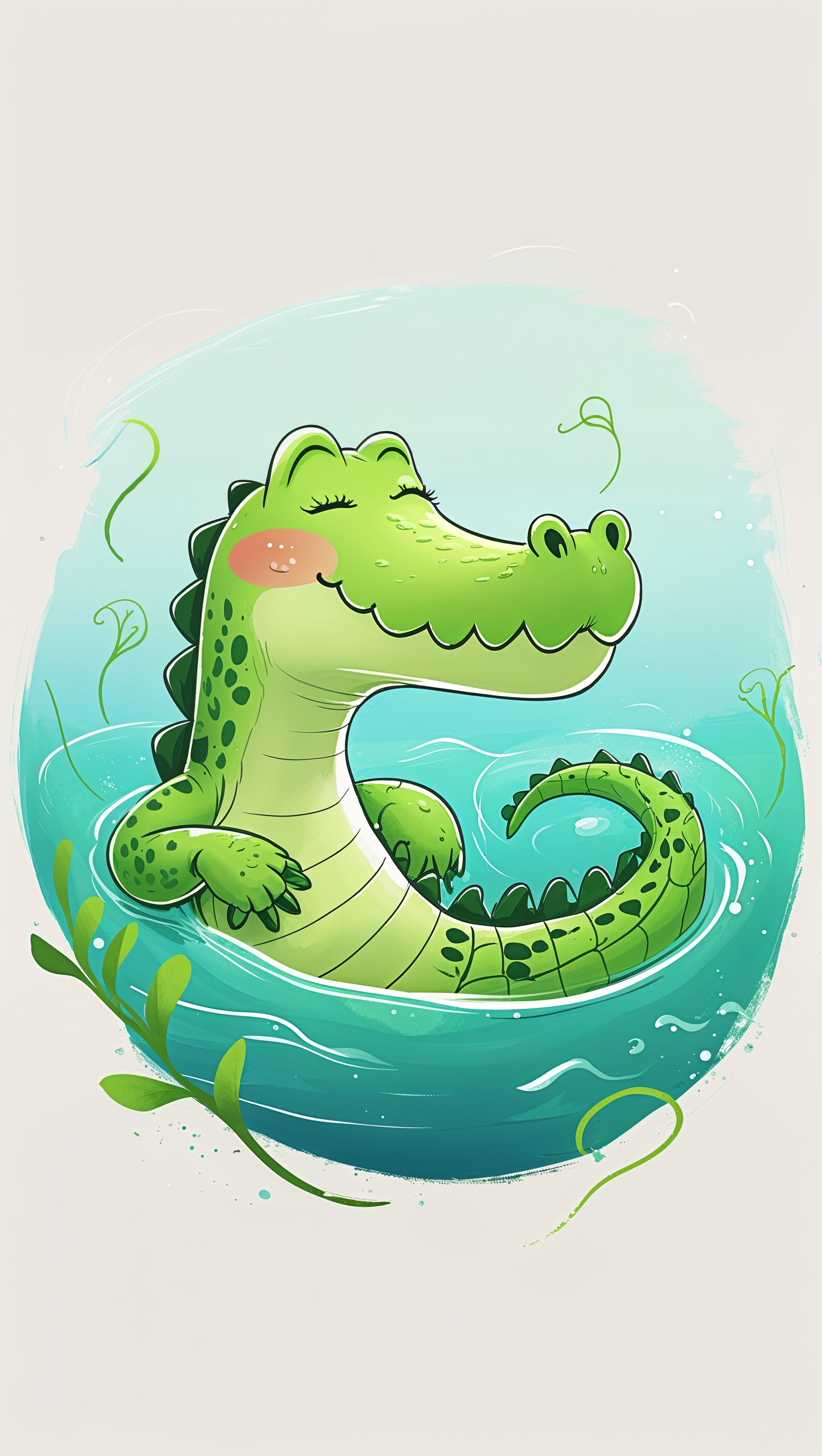1664x2944 iPhone wallpaper with a cartoon alligator swimming