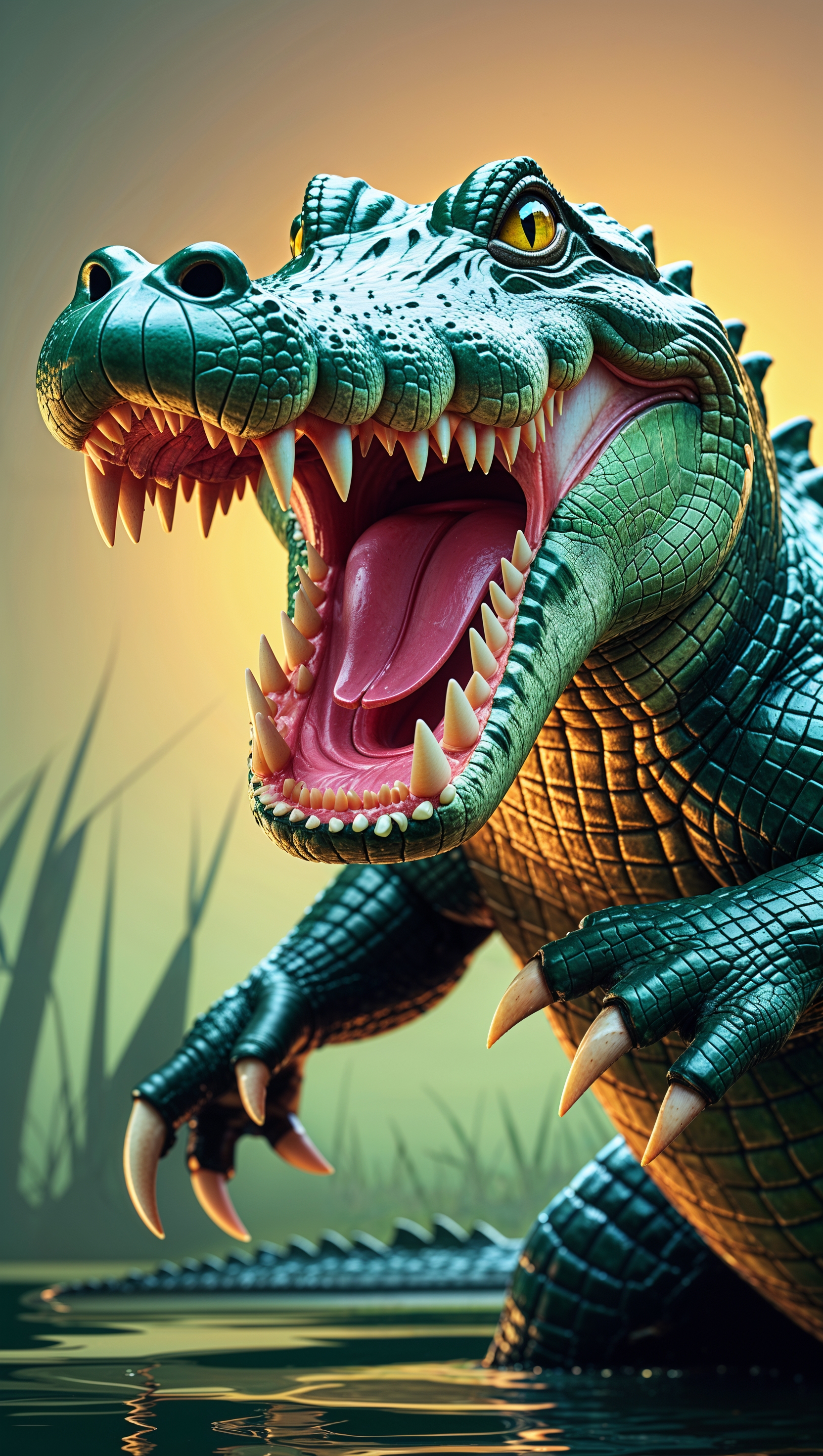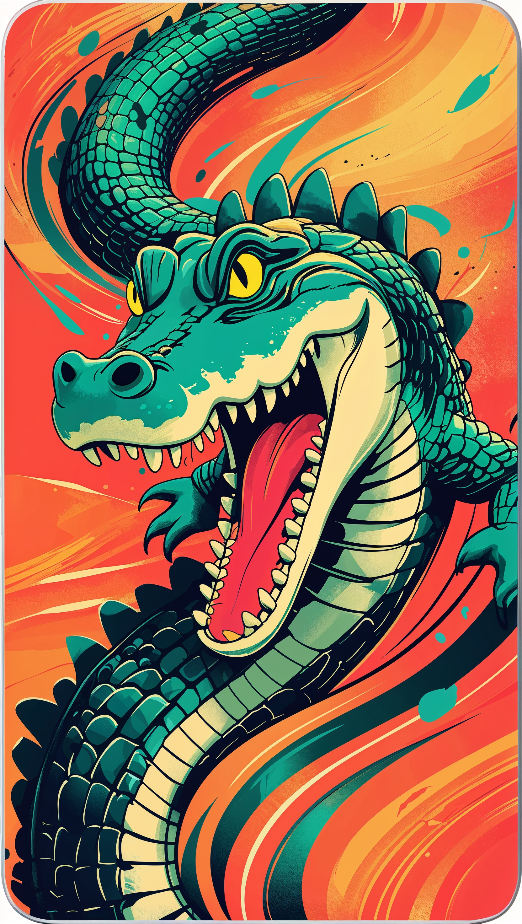 1664x2944 iPhone wallpaper with a fierce and detailed alligator illustration