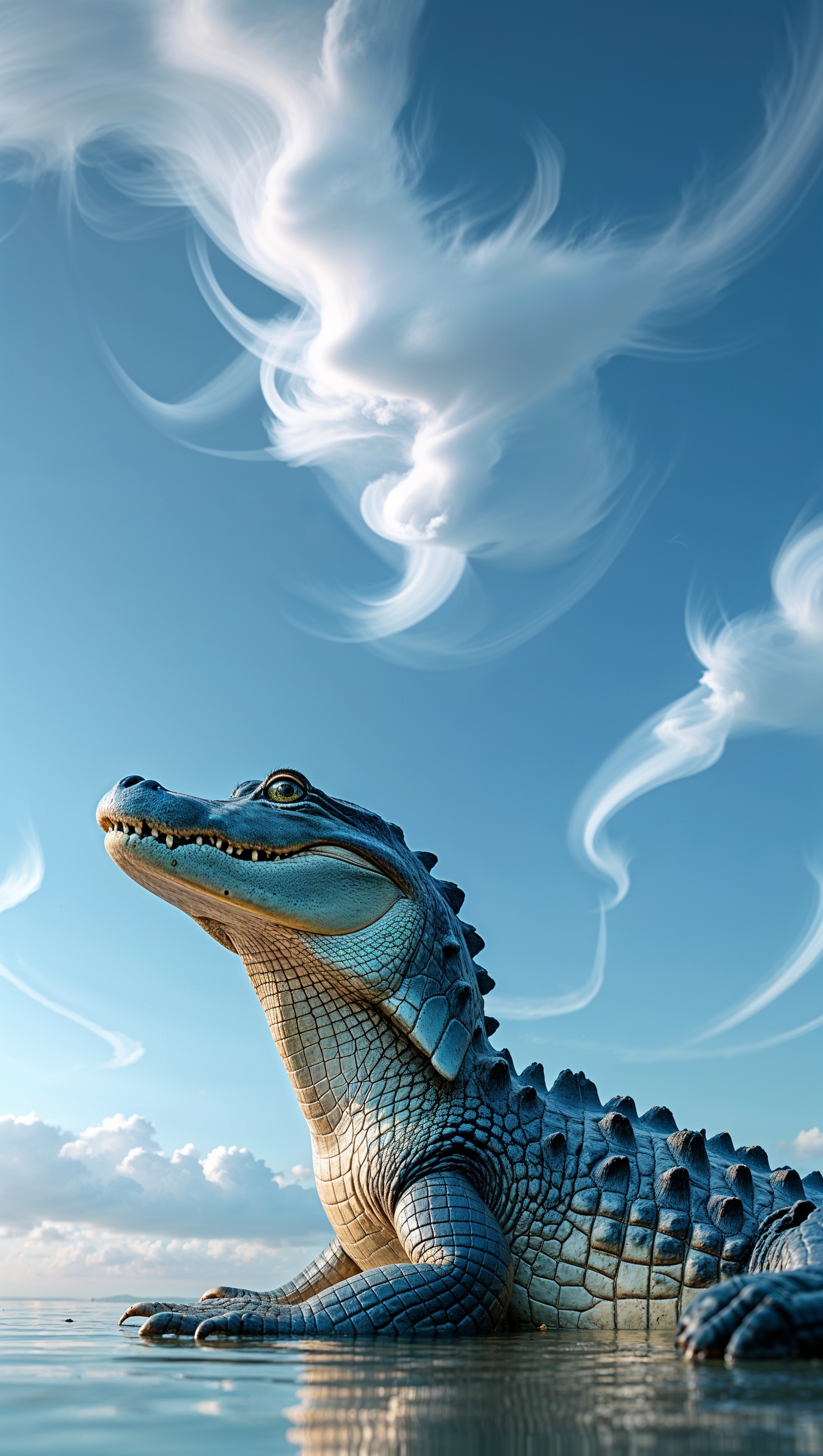 1664x2944 iPhone wallpaper with an alligator and cloudy blue sky