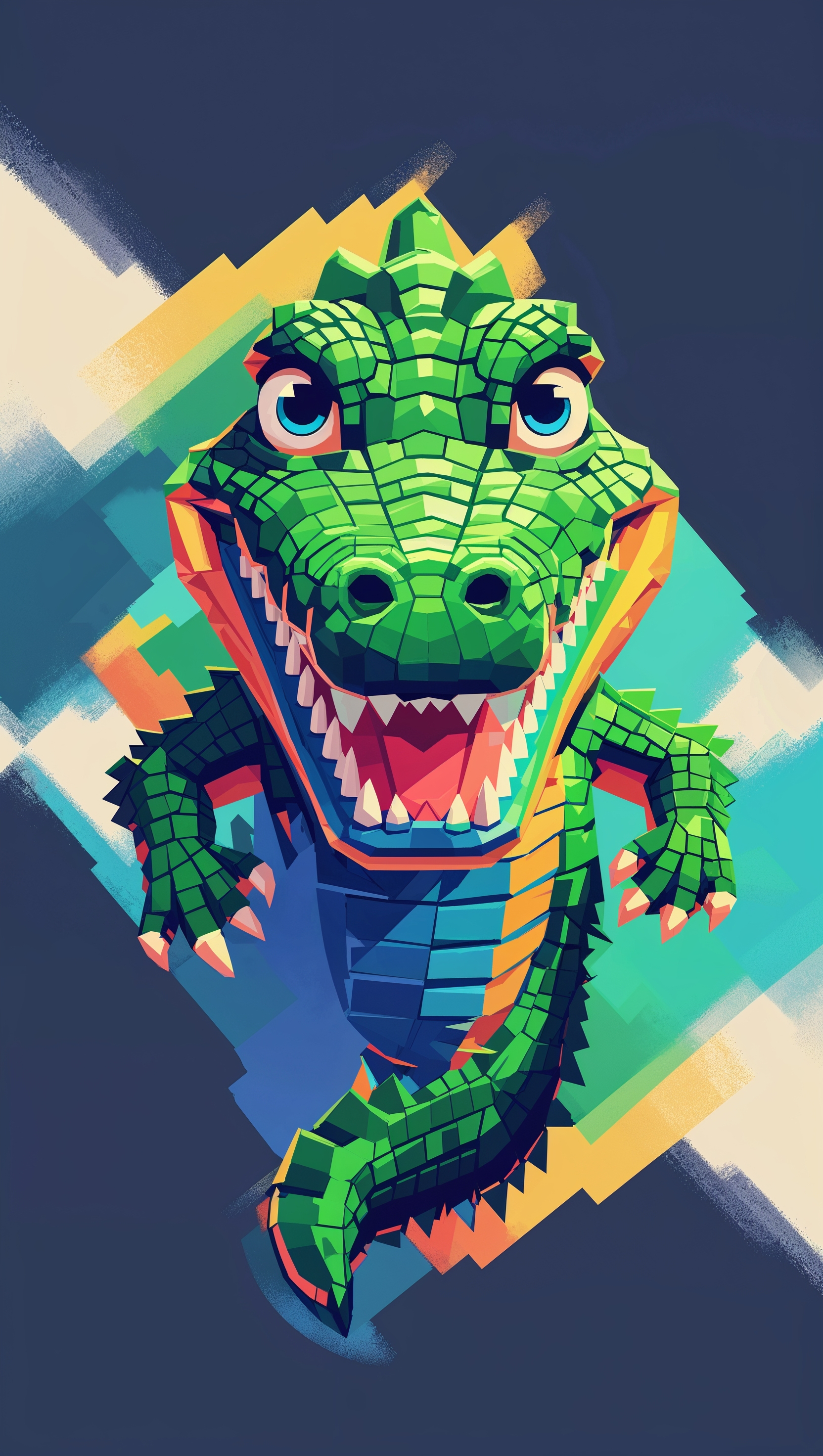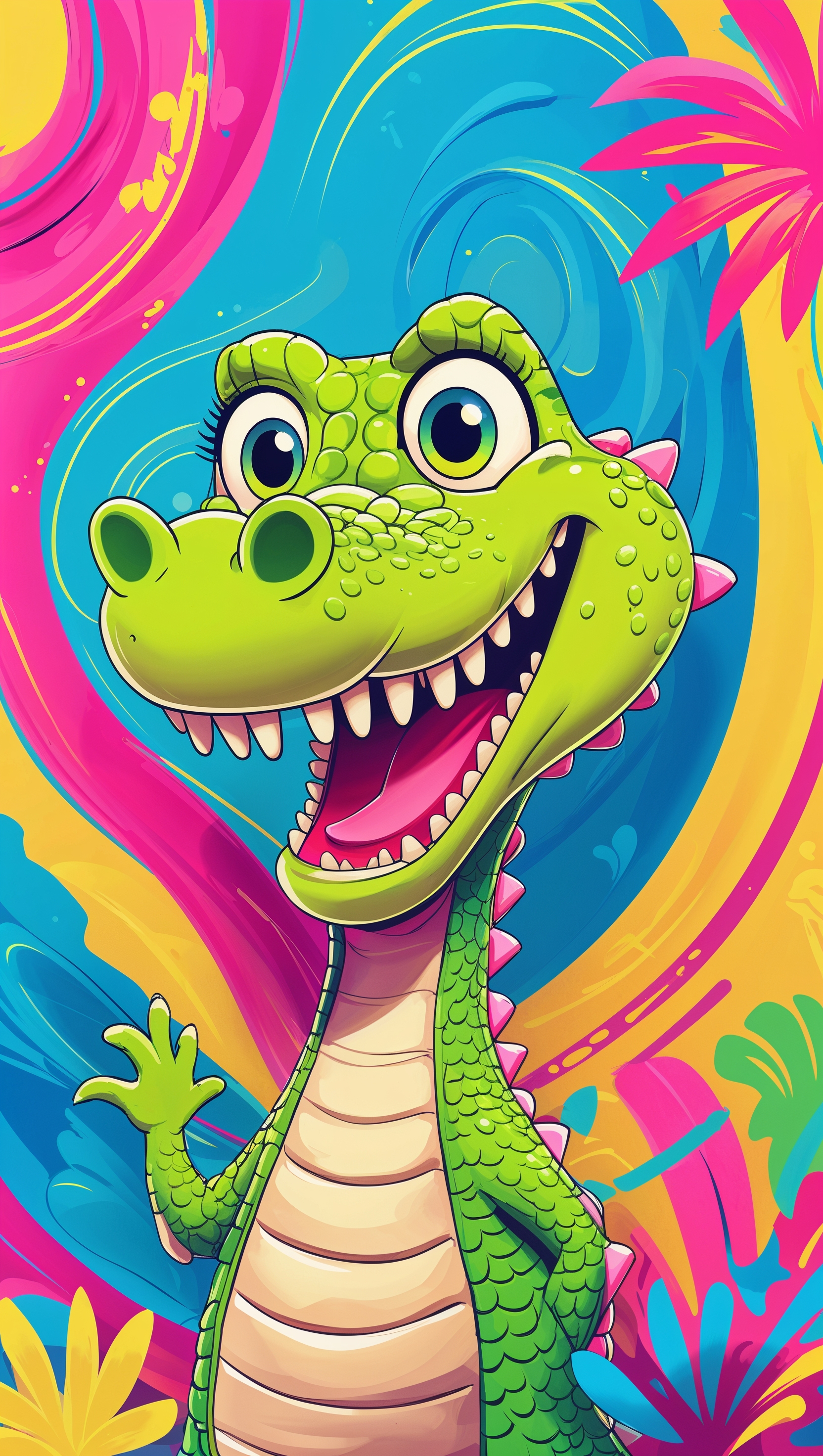 1664x2944 Colorful cartoon style iPhone wallpaper with alligator