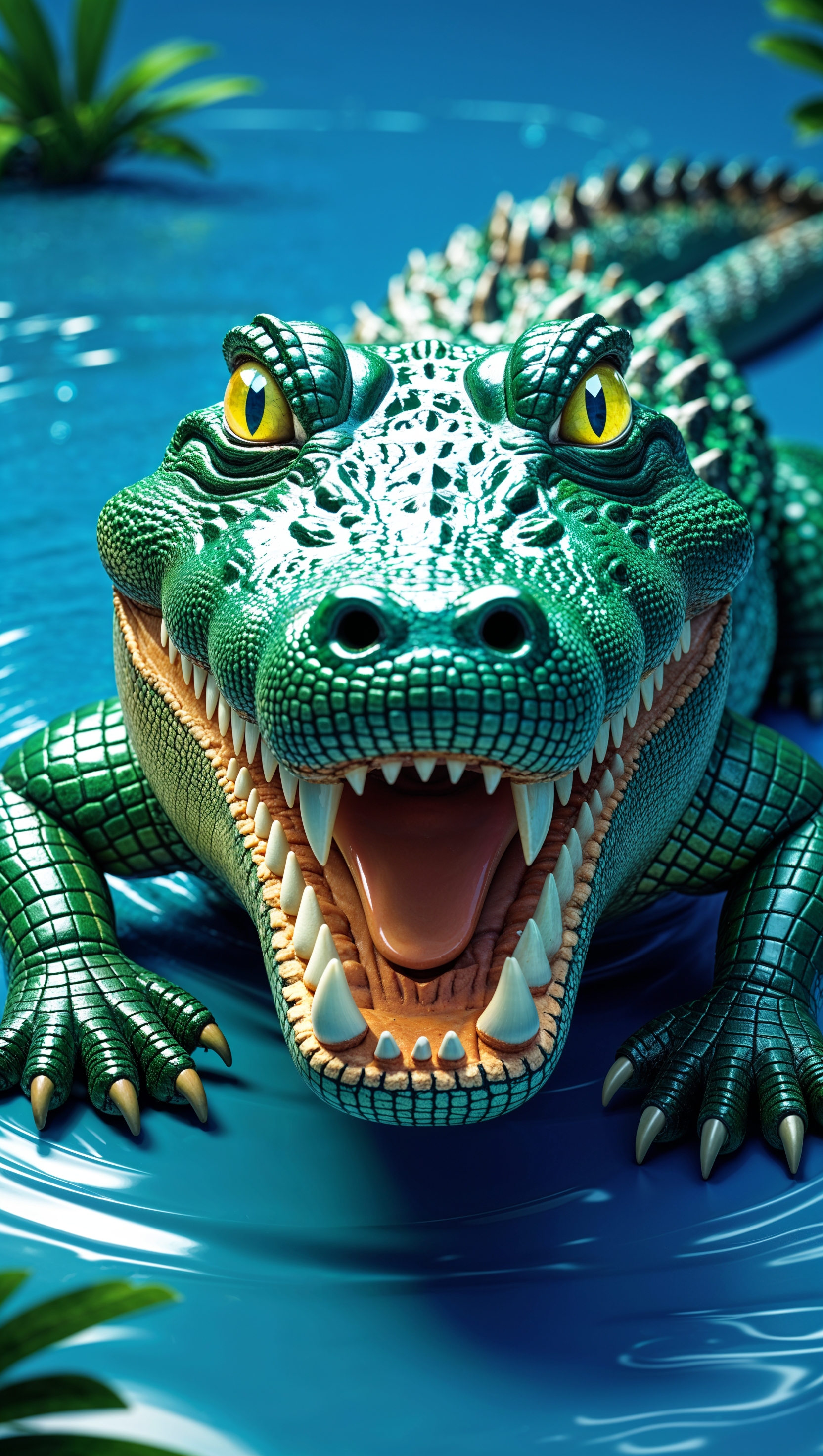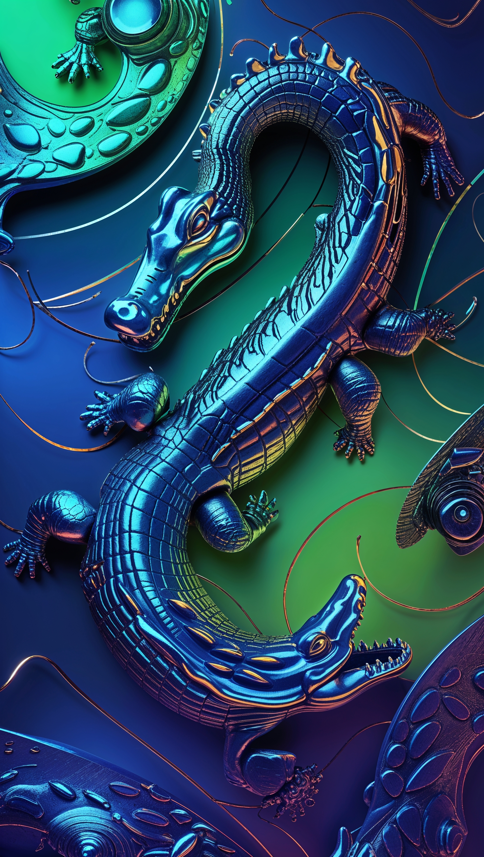 1664x2944 iPhone wallpaper with alligator and dark blue background