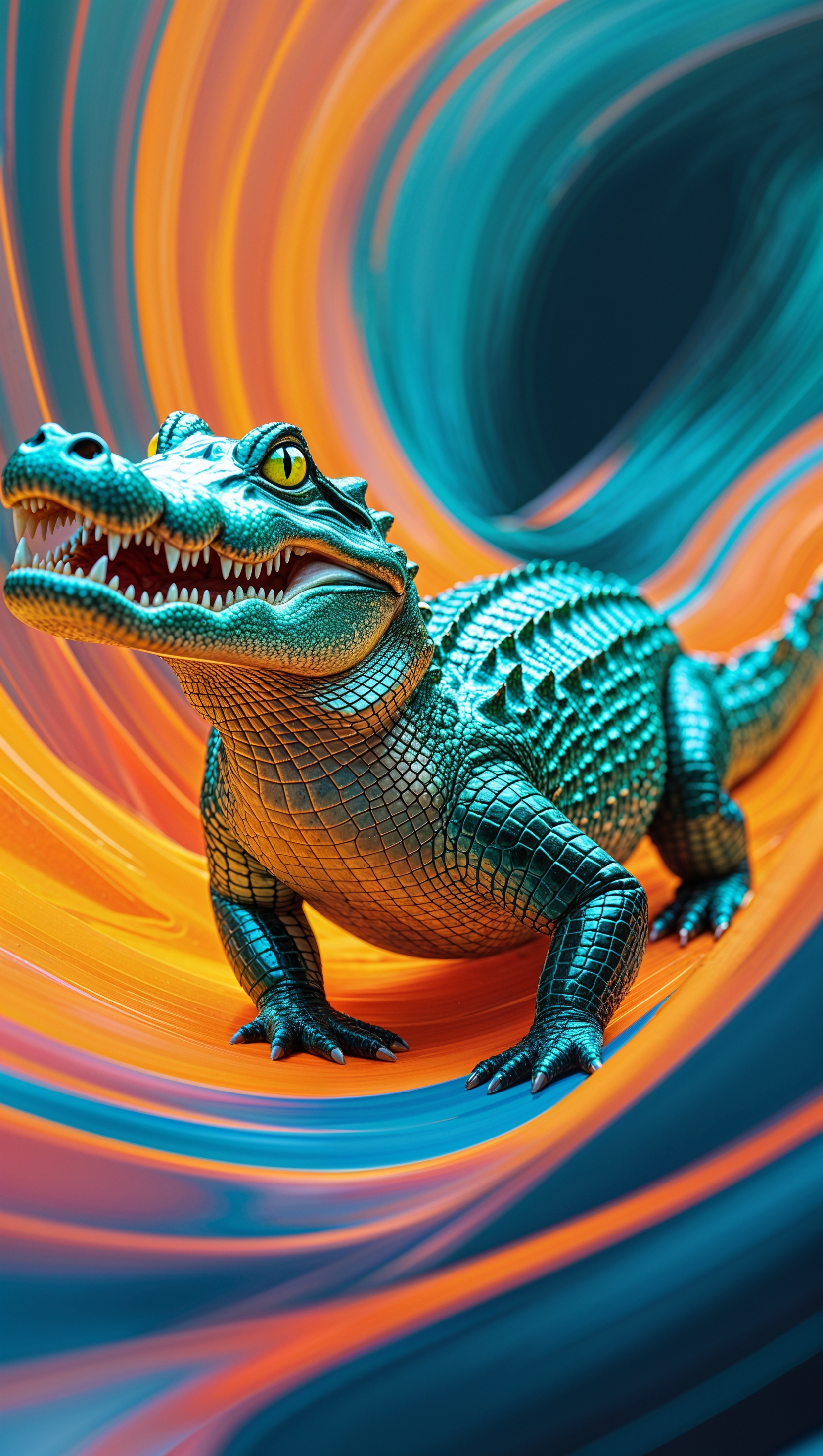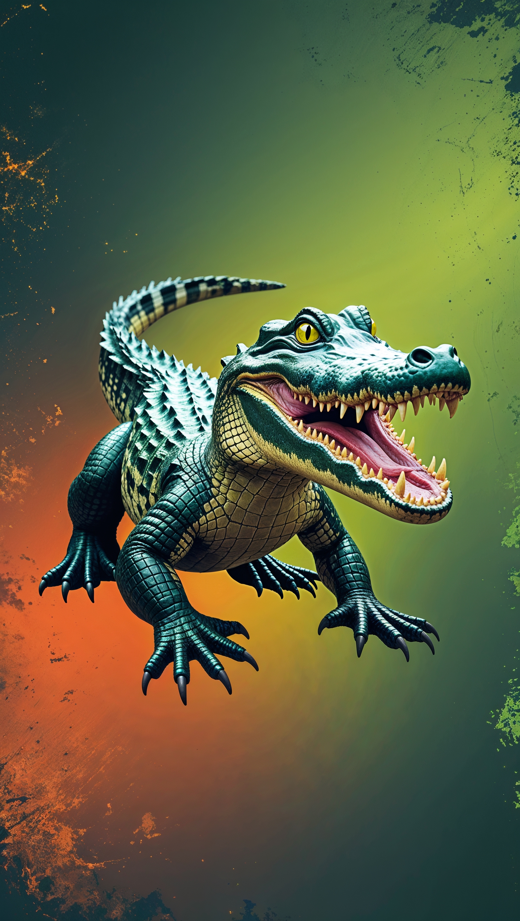1664x2944 iPhone wallpaper with alligator and orange-green color combination