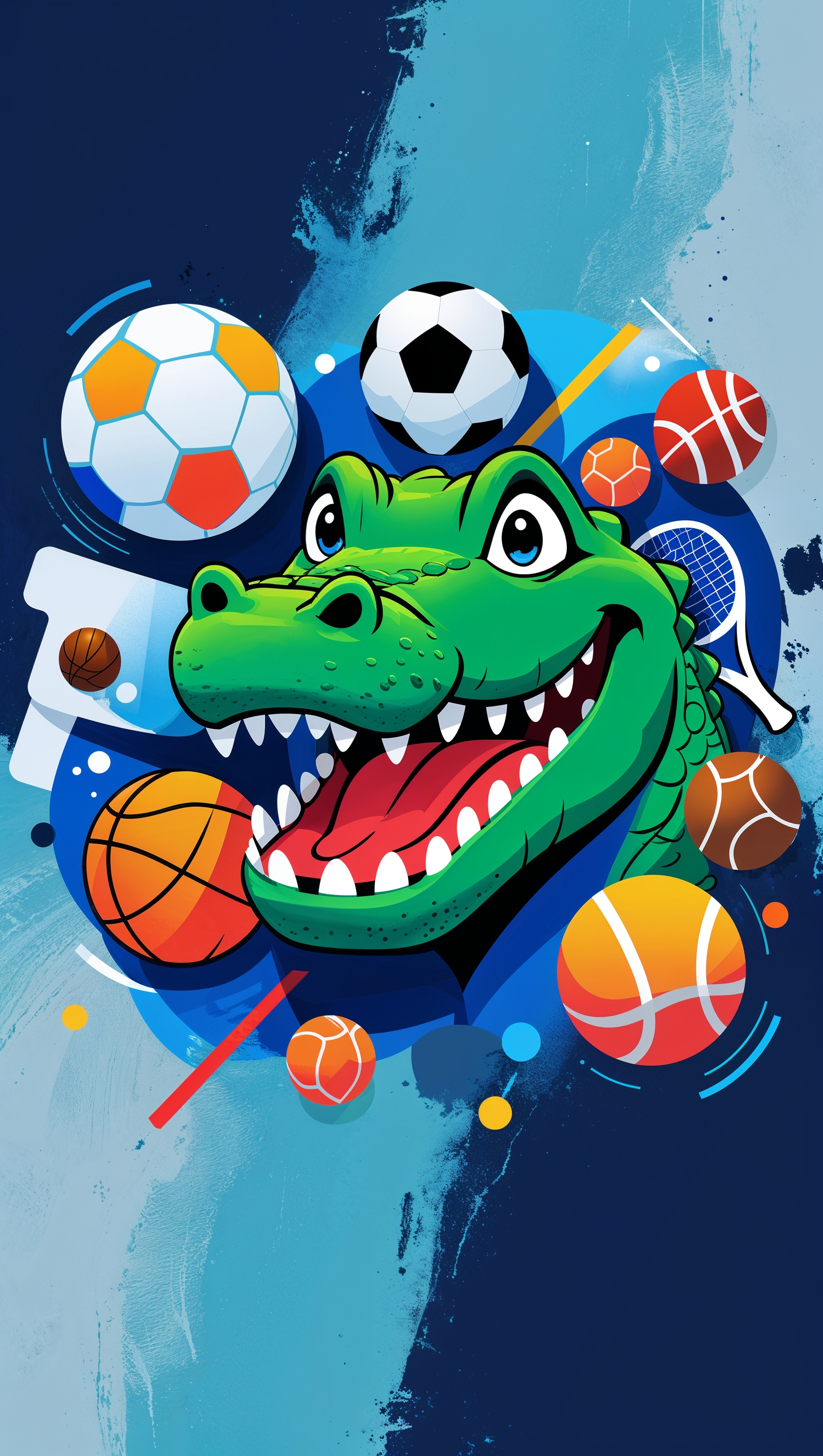 1664x2944 iPhone wallpaper with alligator and various sports icons